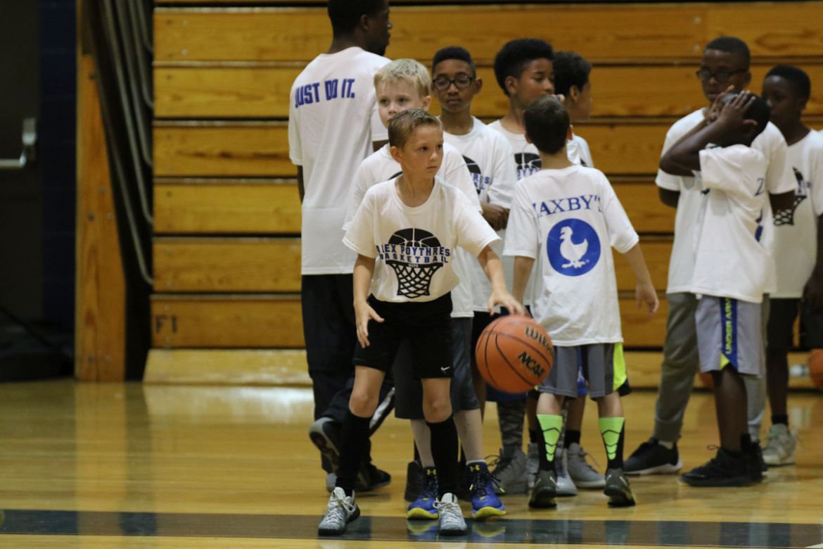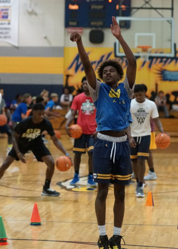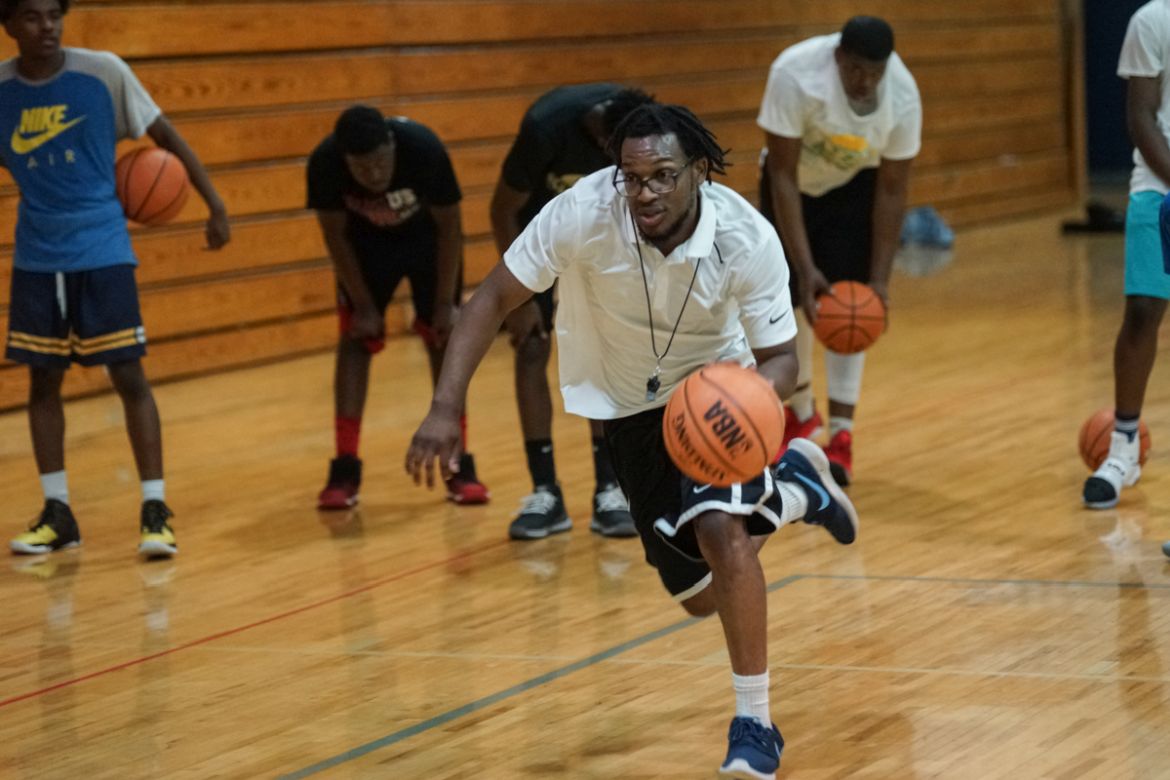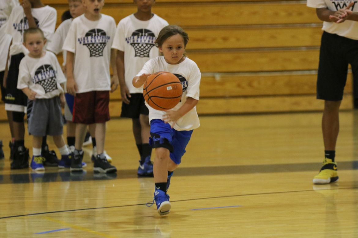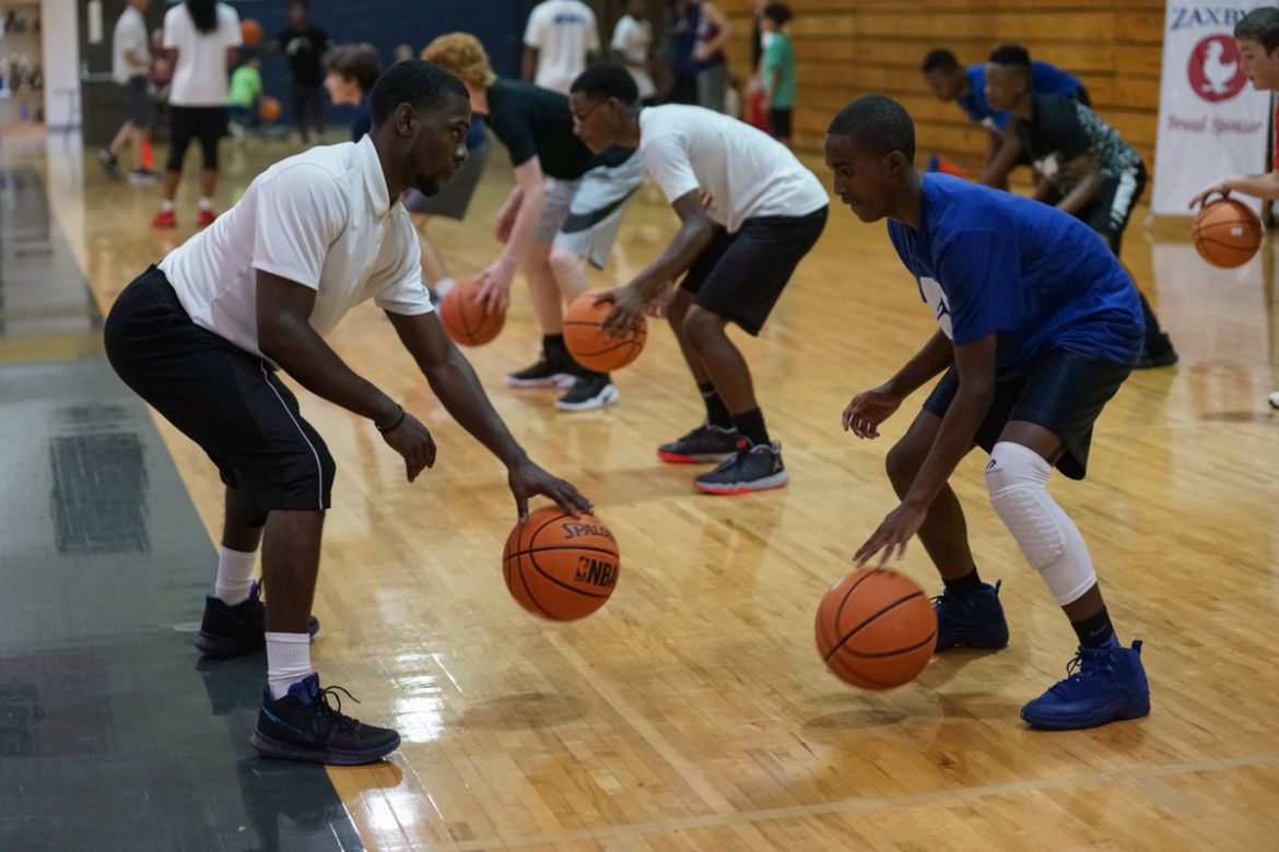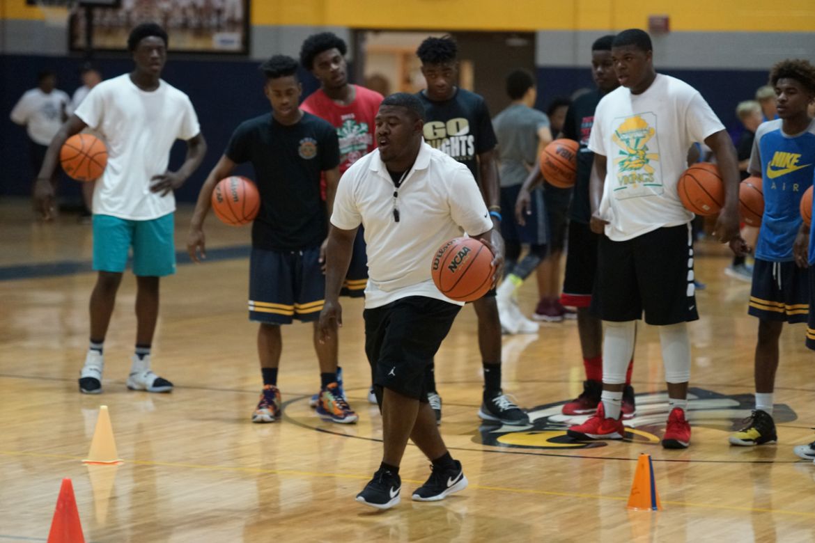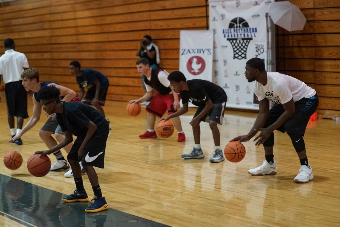Players formed small groups and ran through drills and games to help with their basketball skills.