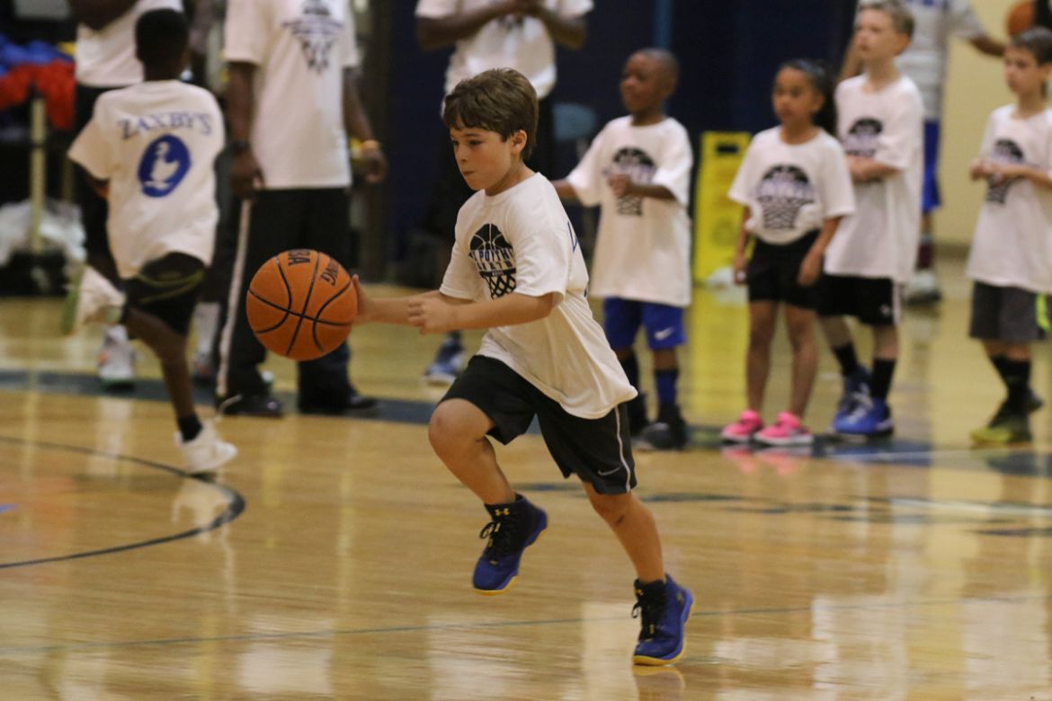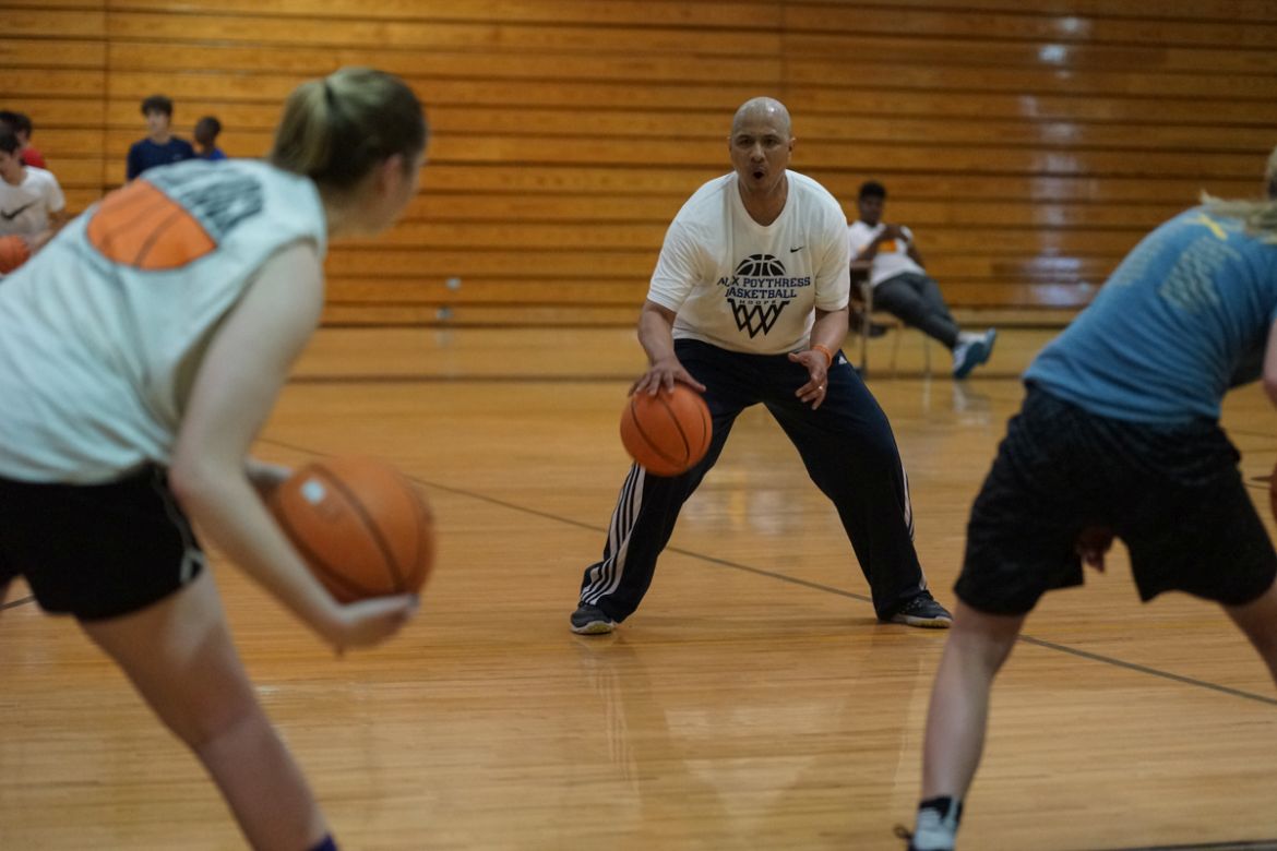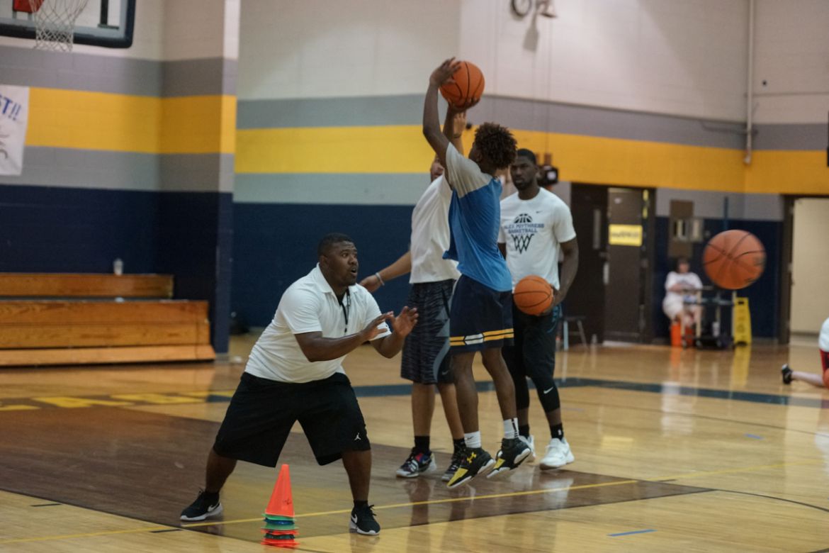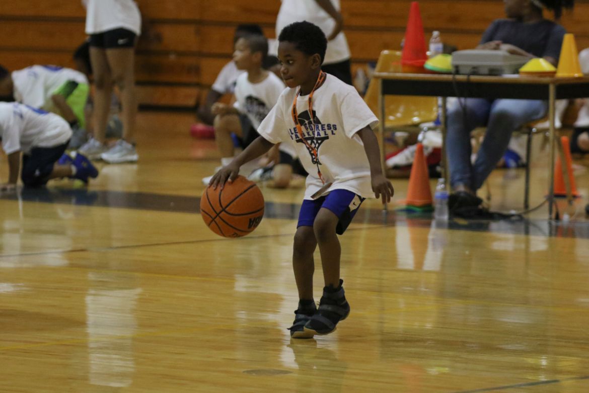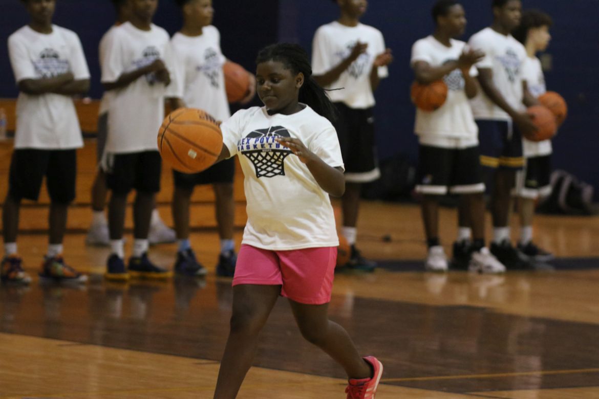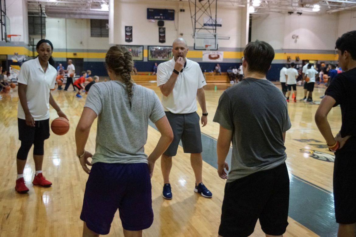 Players formed small groups and ran through drills and games to help with their basketball skills.