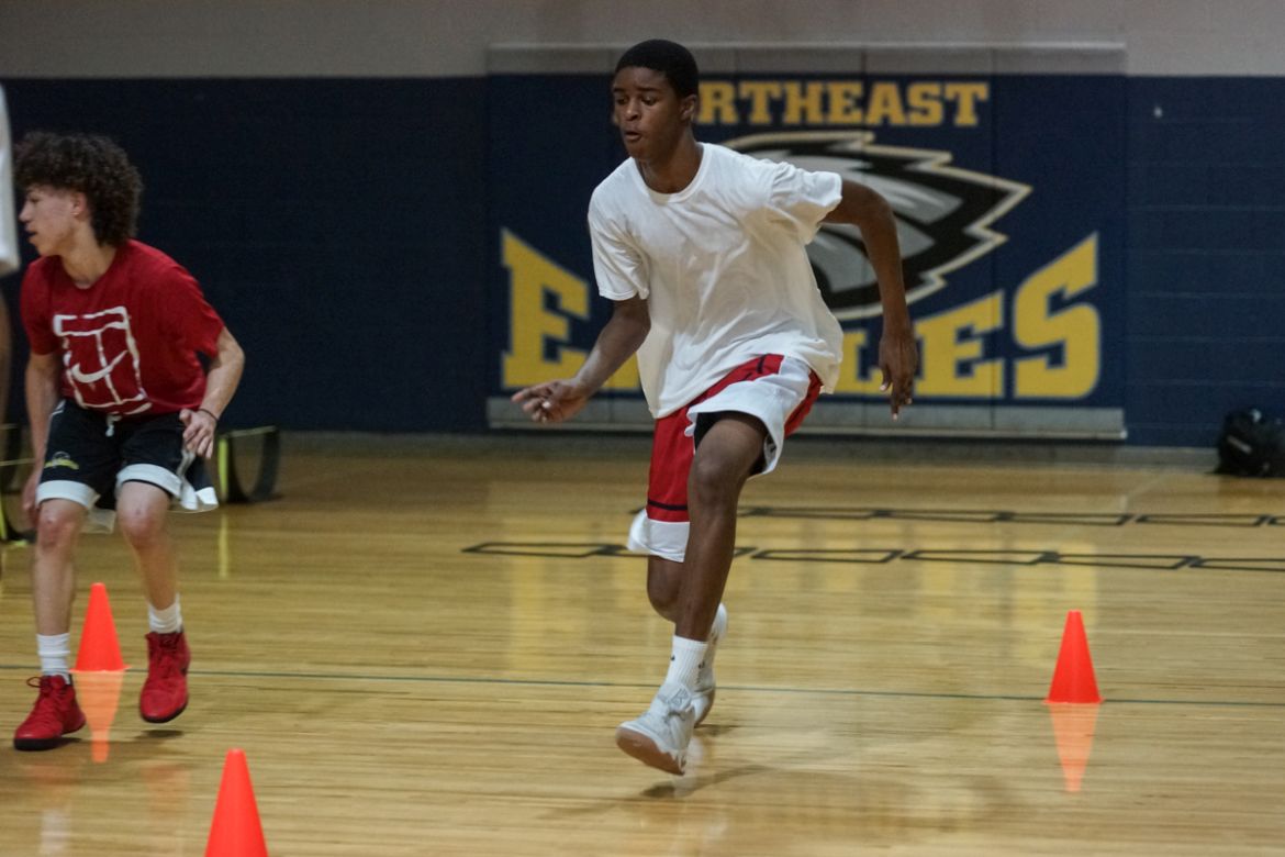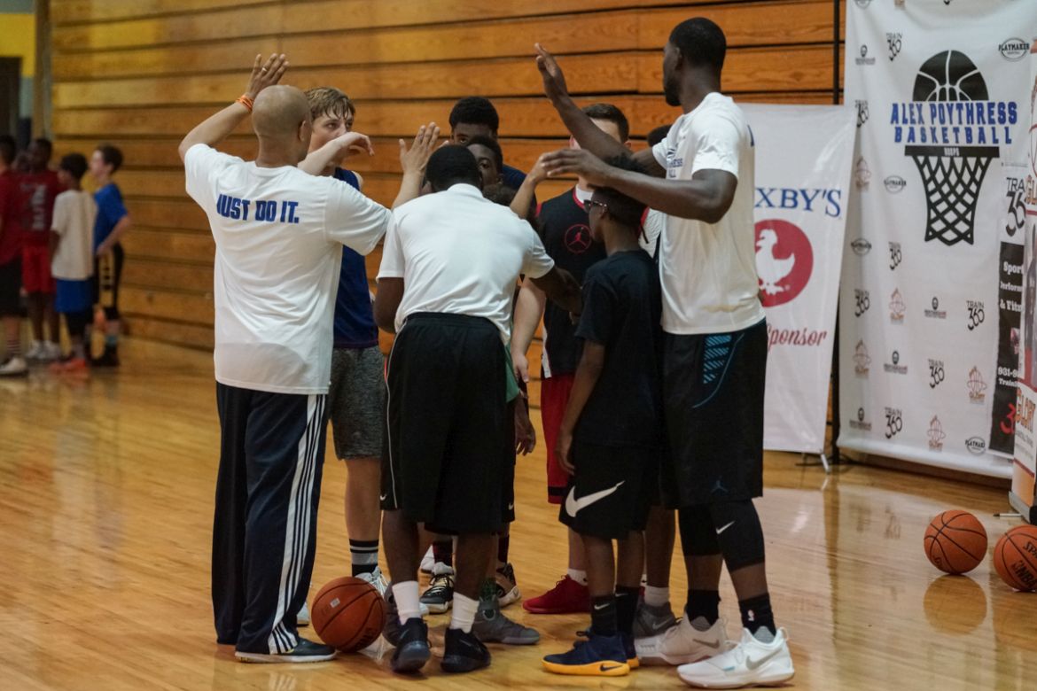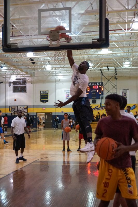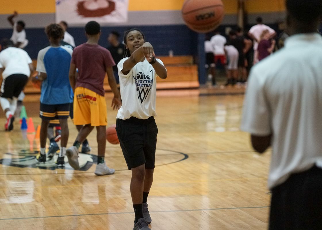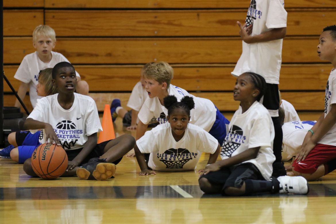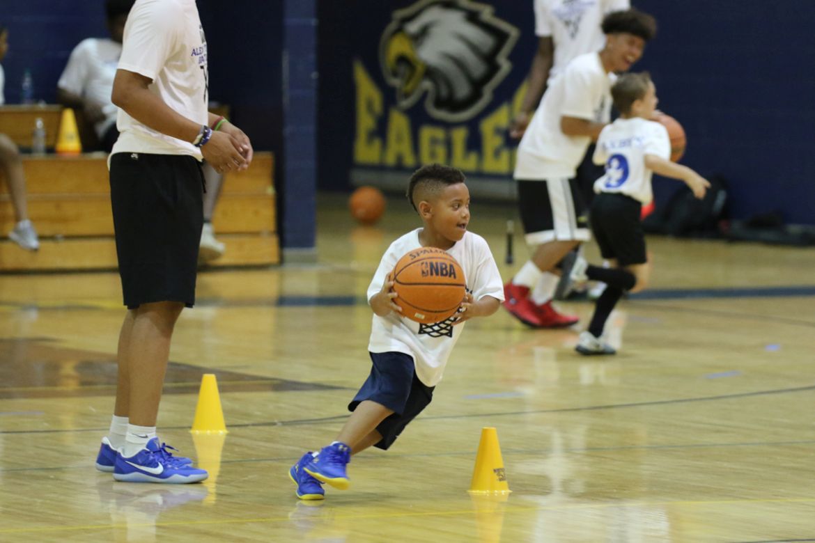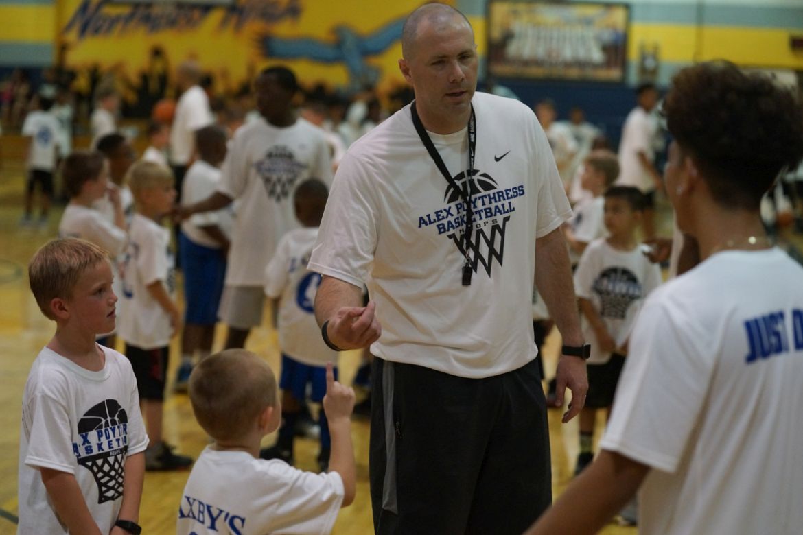 Players formed small groups and ran through drills and games to help with their basketball skills.