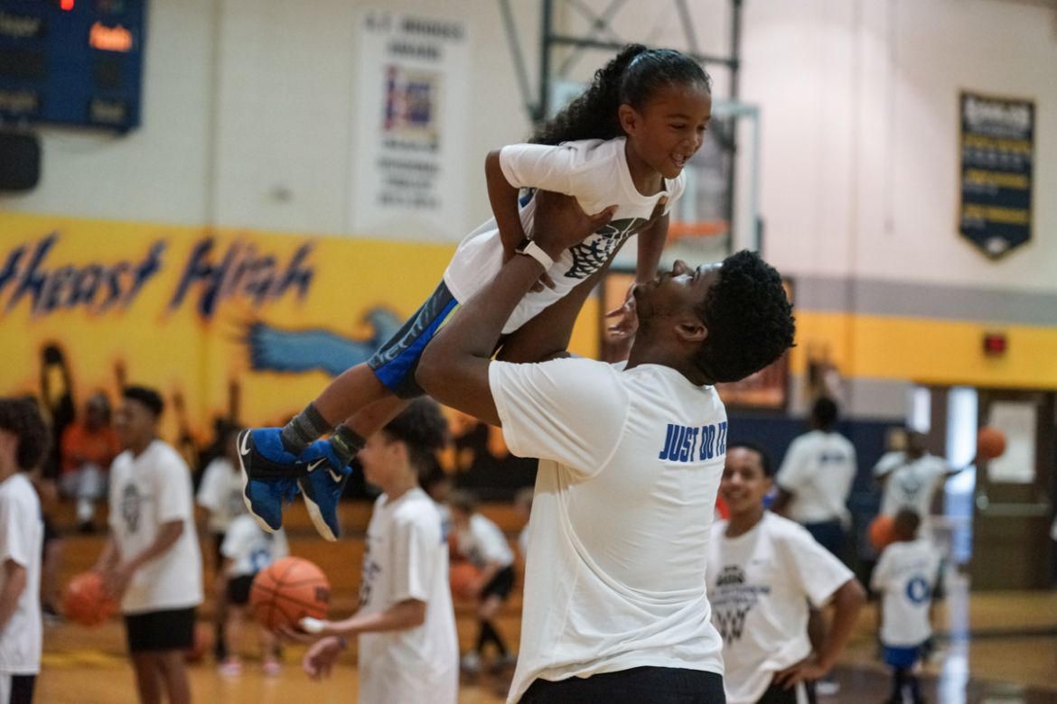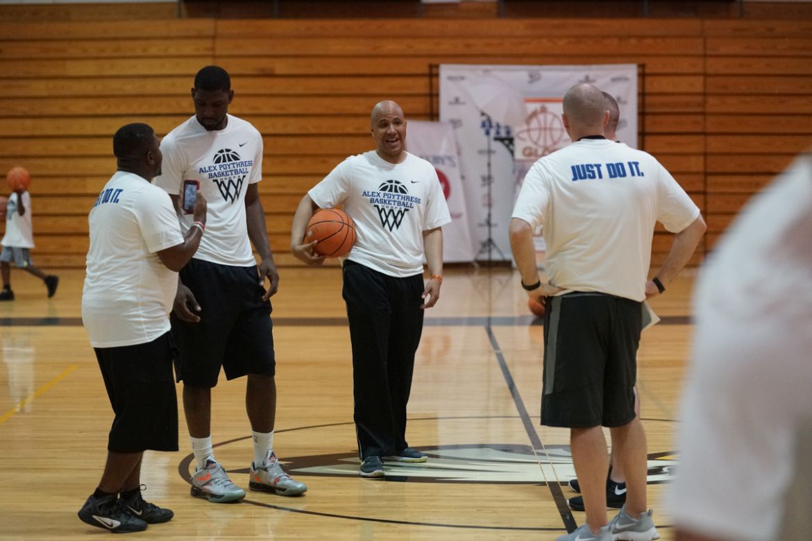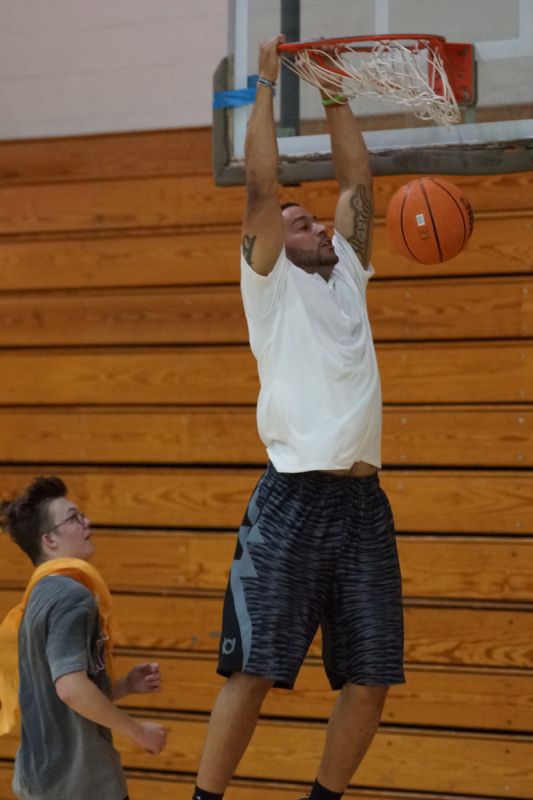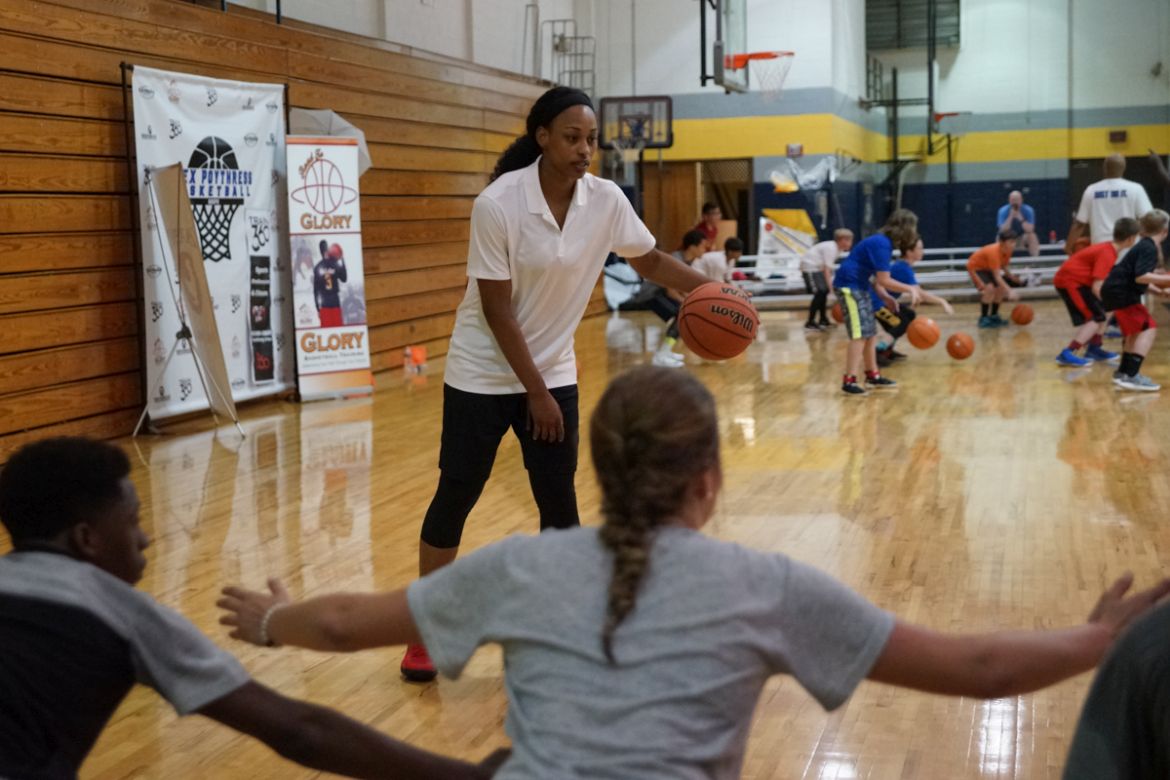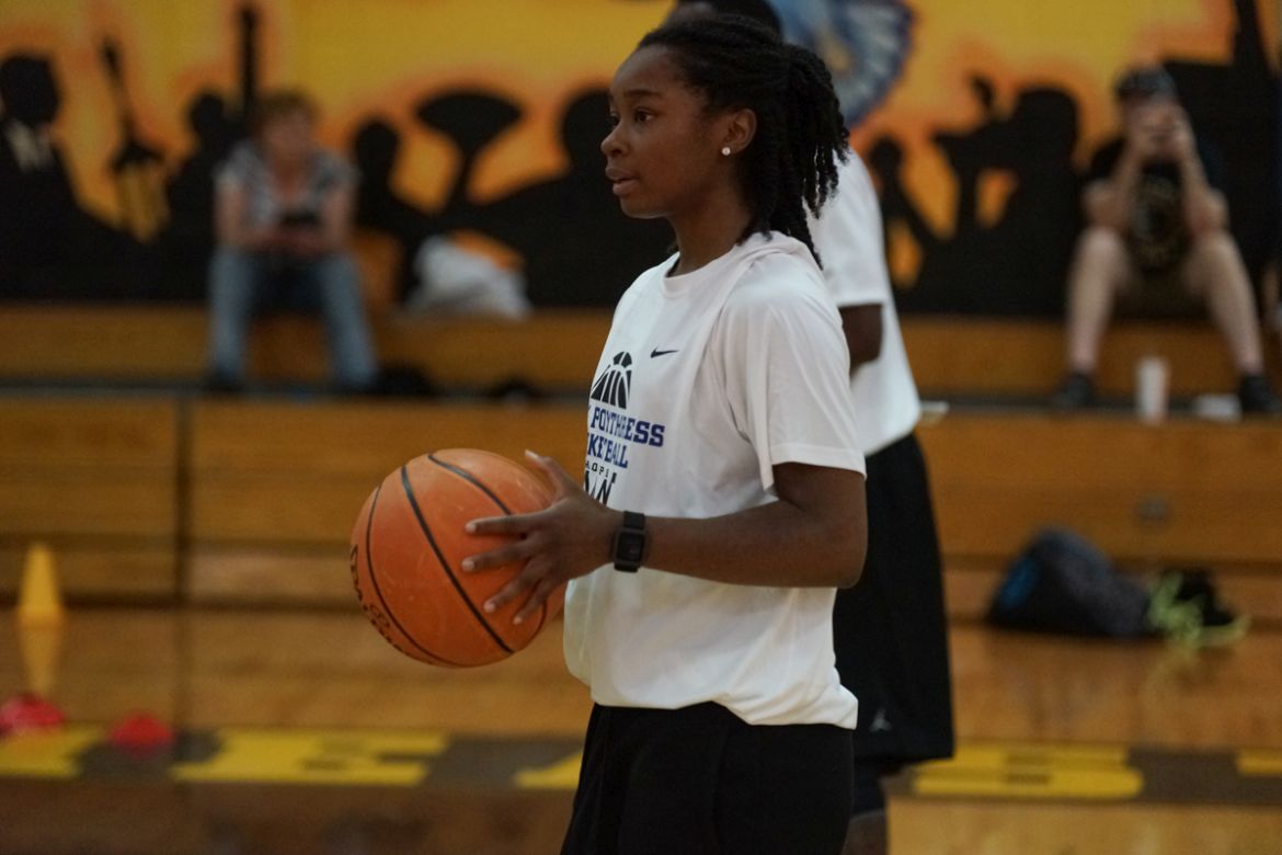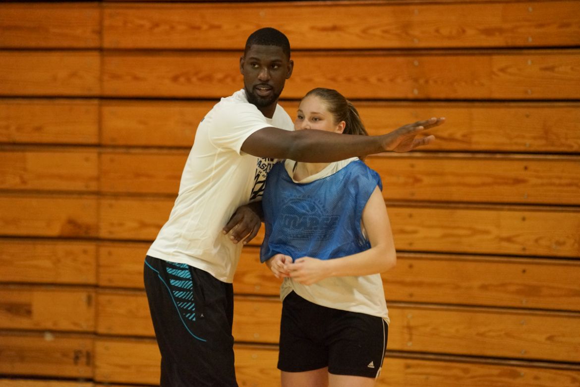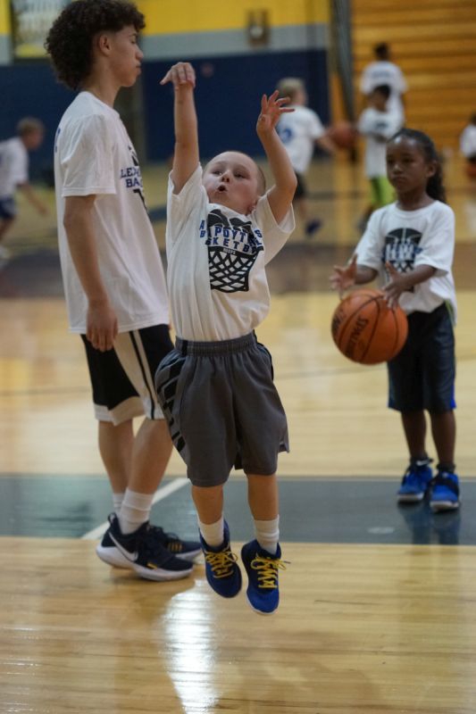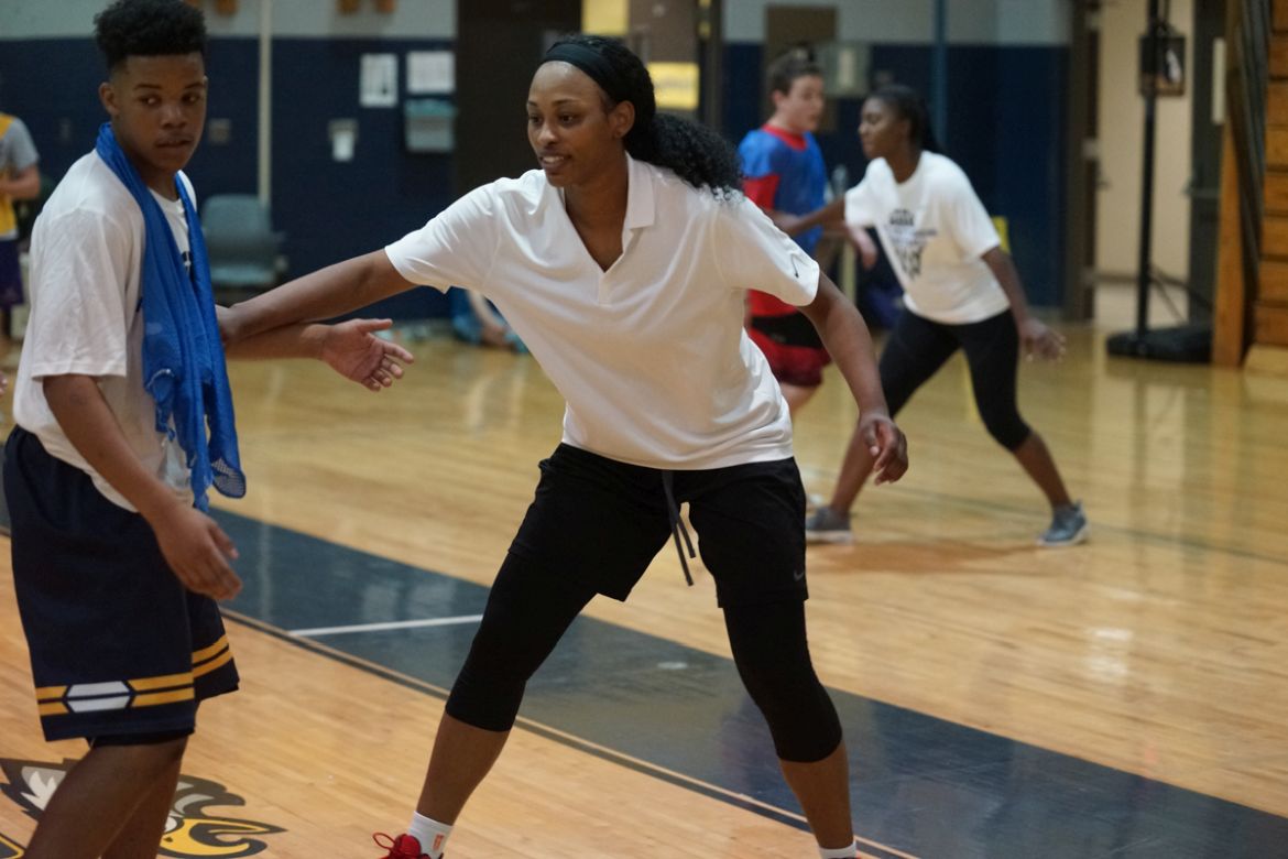 Players formed small groups and ran through drills and games to help with their basketball skills.