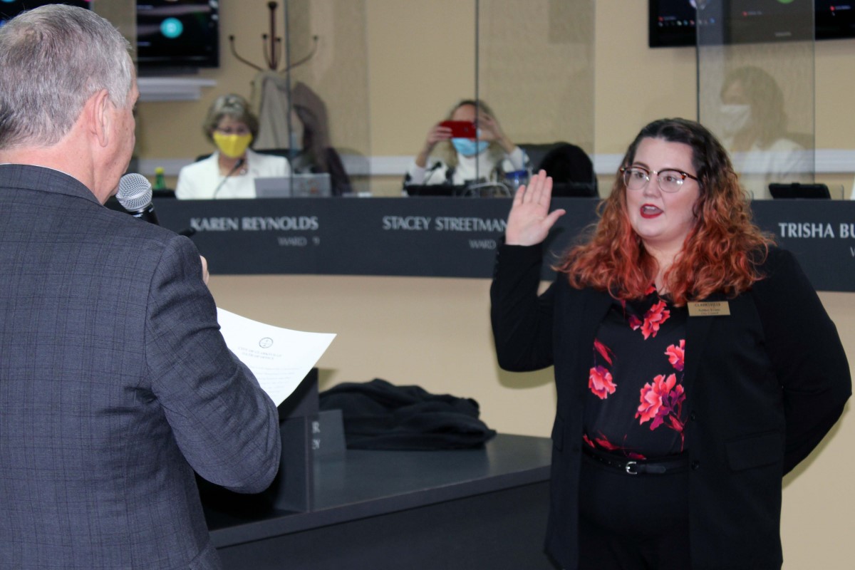 Six new council members, DaJuan Little (Ward 3), Jason Knight (Ward 5), Wanda Allen (Ward 8), Karen Reynolds (Ward 9), Ashlee Evans (Ward 11) and Trisha Butler (Ward 12) attended a special session where Pitts administered the oath of office.