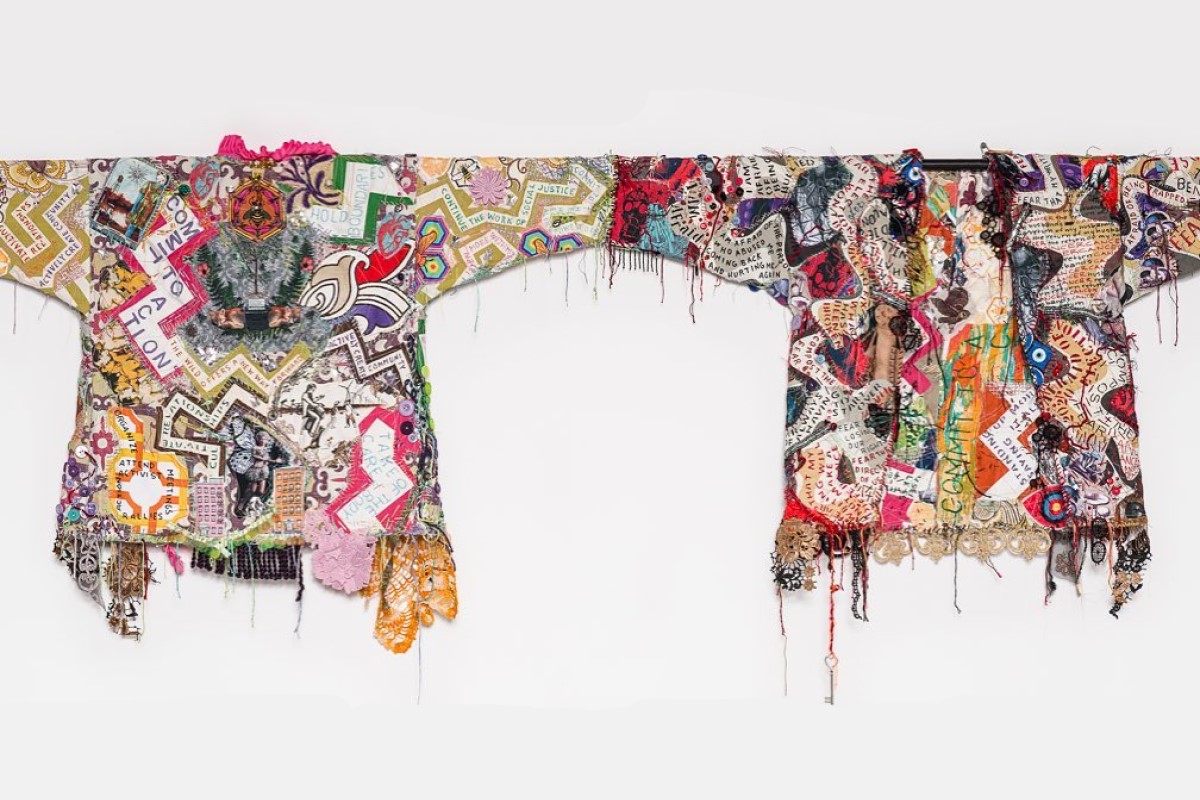Co-curated by Michael Dickins, director of The New Gallery, and Erika Diamond, curator and assistant director of CVA galleries at Chautauqua Institution, this exhibition of conceptual garment work looks at the complex ways in which textiles, particularly garments, tell the stories of the past, present, and future. More than just armor for the body, they relay the resilience of a culture – worn for protection but also as a way to proclaim one’s identity.