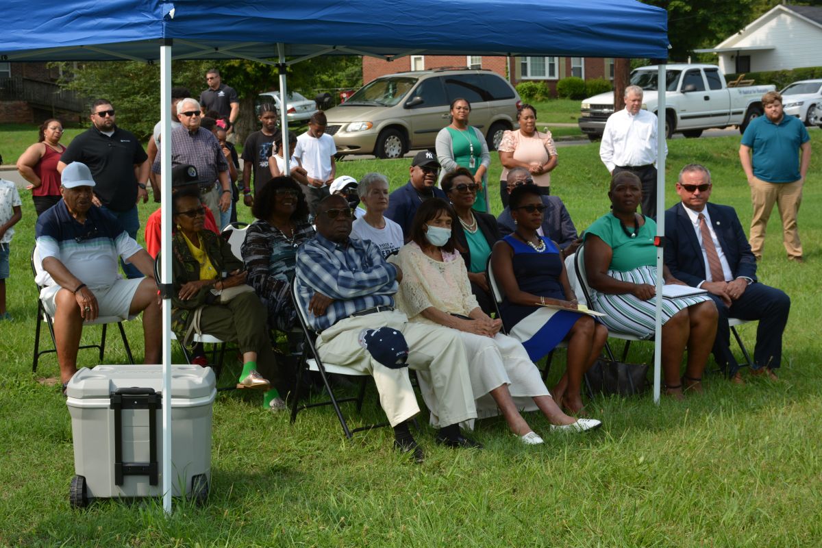 Tony Eldridge Pastor James Brigham and Kimberly Wiggins at the announcement of plans for the new Brigham Park at the corner of Daniel St. and Central Ave. on, Aug. 1, 2022. (Lee Erwin)