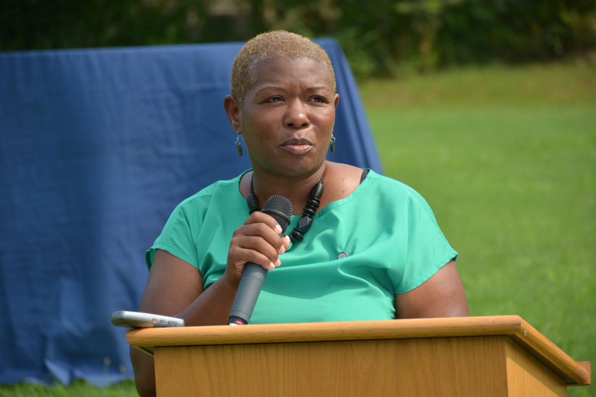 District 5 Montgomery County Commissioner Rashidah Leverett speaks at the announcement of plans for the new Brigham Park at the corner of Daniel St. and Central Ave. on, Aug. 1, 2022. (Lee Erwin)