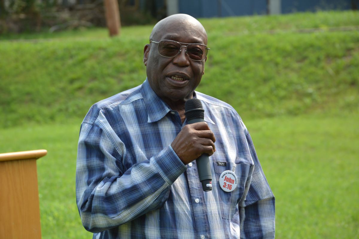 Pastor James Brigham speaks at the announcement of plans for the new Brigham Park at the corner of Daniel St. and Central Ave. on, Aug. 1, 2022. (Lee Erwin)