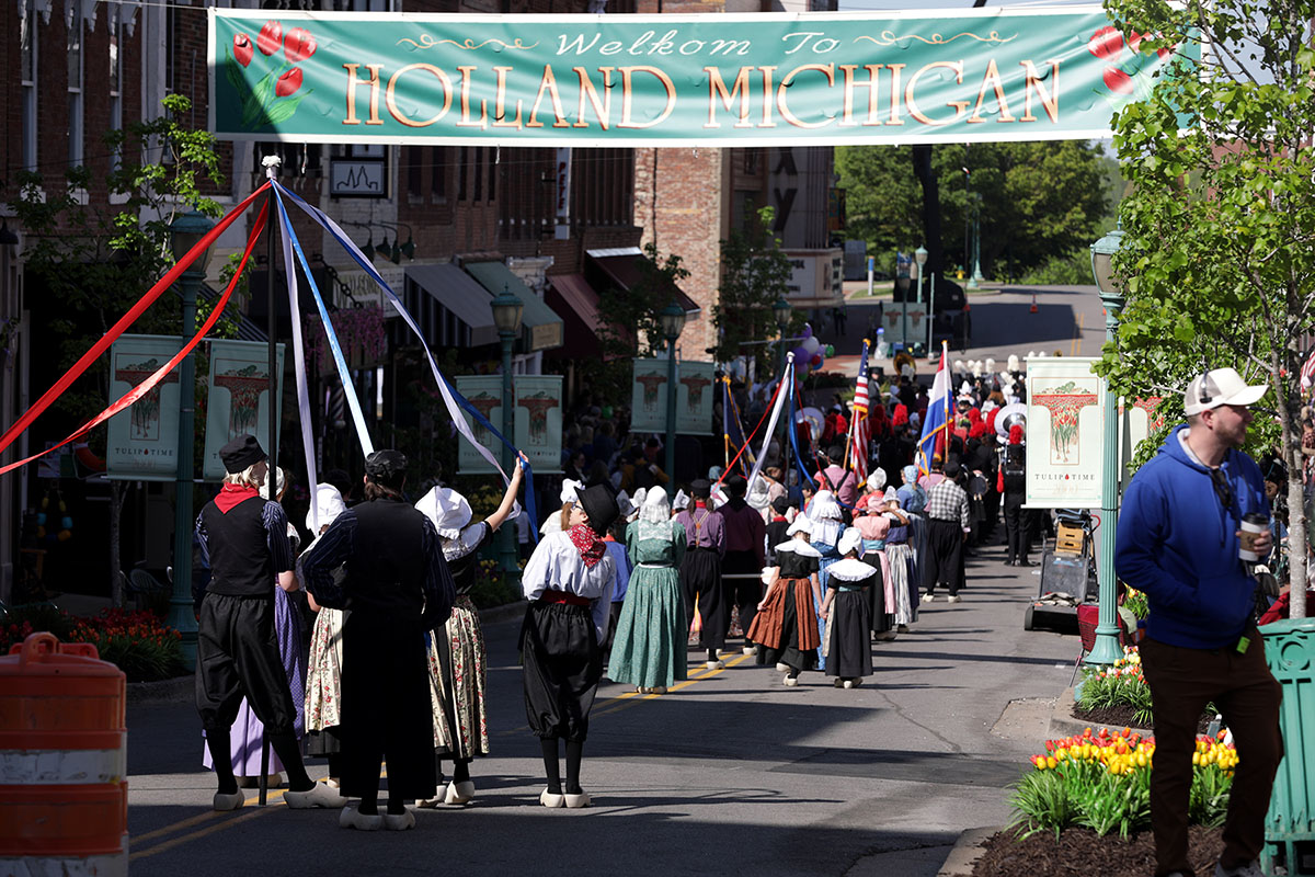 Various businesses downtown were given temporary signage, transformed into peanut shops, flower stores and more. Plastic tulips were “planted” on the sidewalks and in flower boxes along the street.