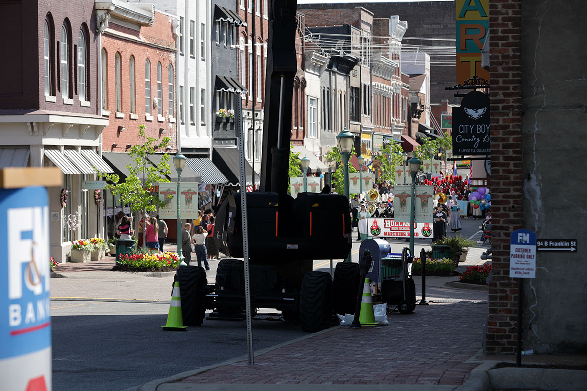 The parade scene for the forthcoming Amazon film called Holland, Michigan, starring Nicole Kidman, began filming on Tuesday on a revamped Franklin Street in downtown Clarksville.