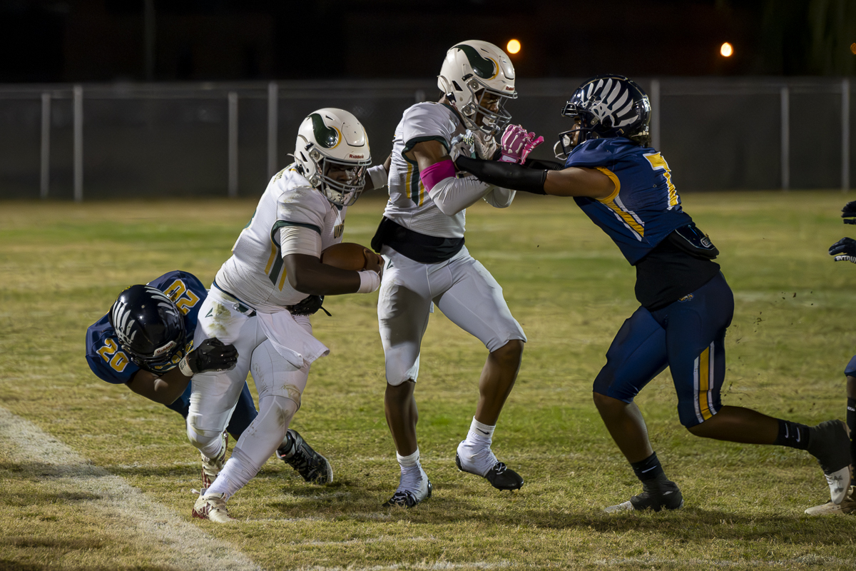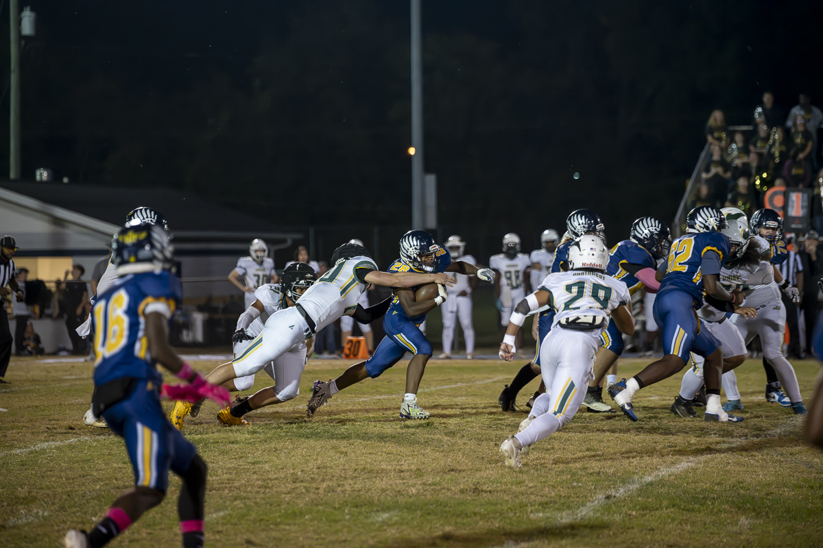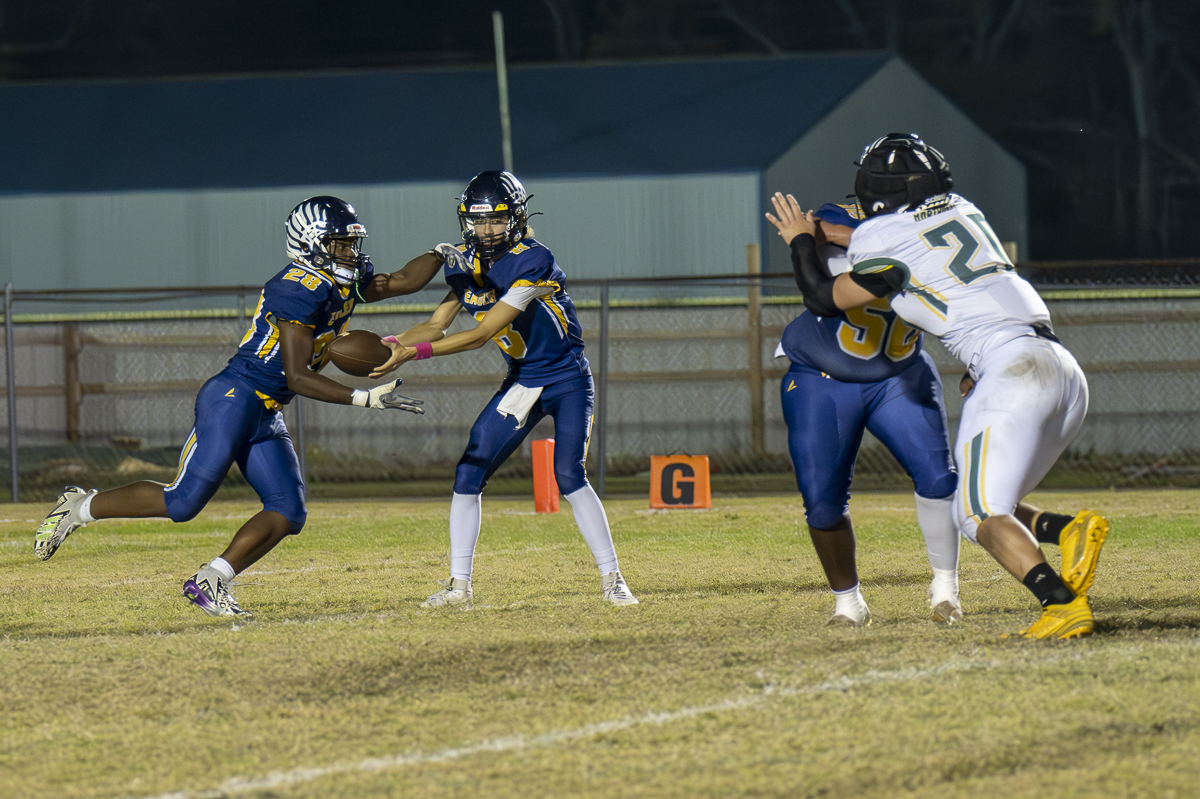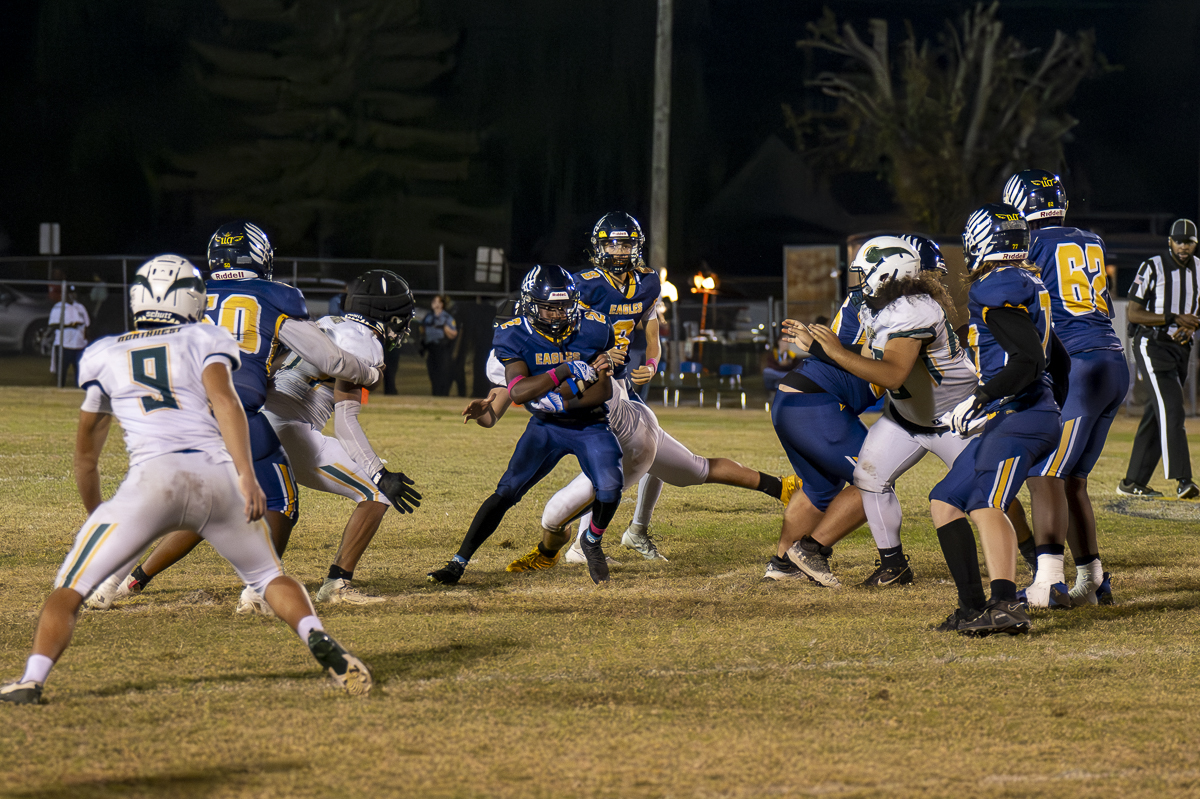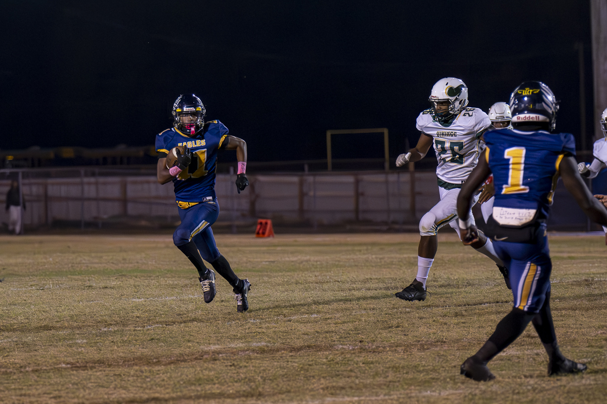 The first quarter was quiet for both teams, trading punts for a few drives. Then, the offense exploded in the second quarter for three straight touchdowns: first a catch by Terry Jones, Shamad Parker grabbing a touchdown second, and Jonas Veasy getting on the board last, to give the Eagles a 21-0 lead heading into the half.