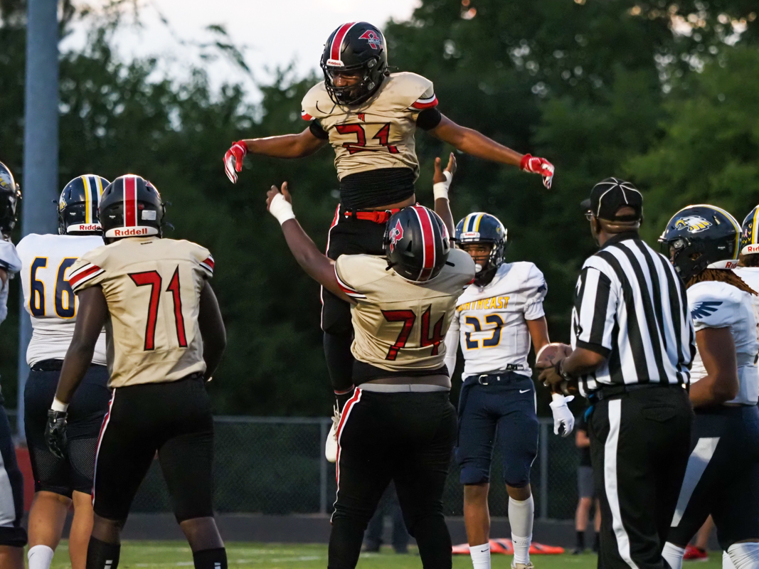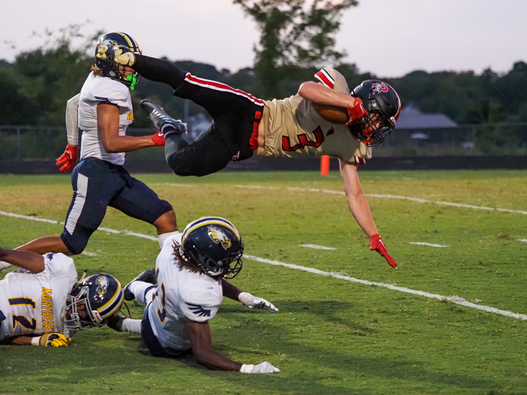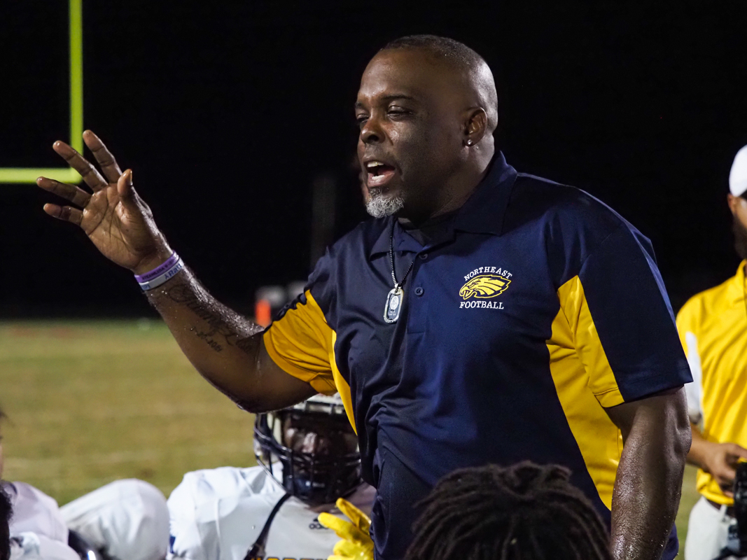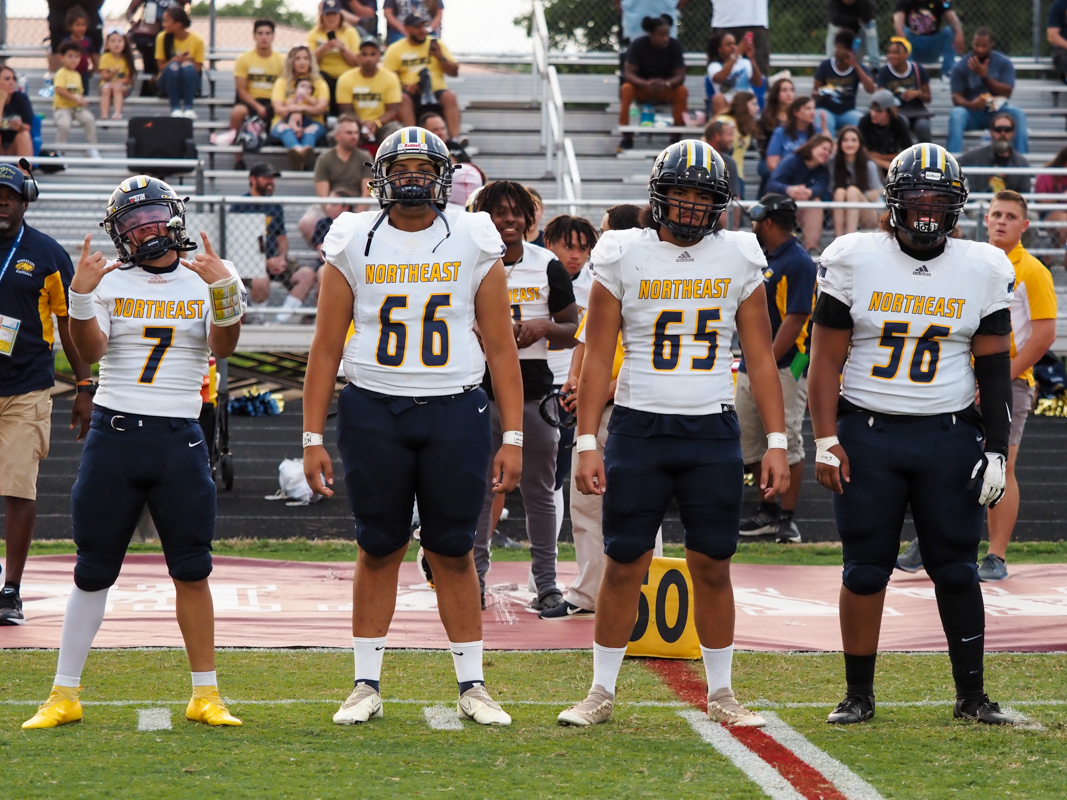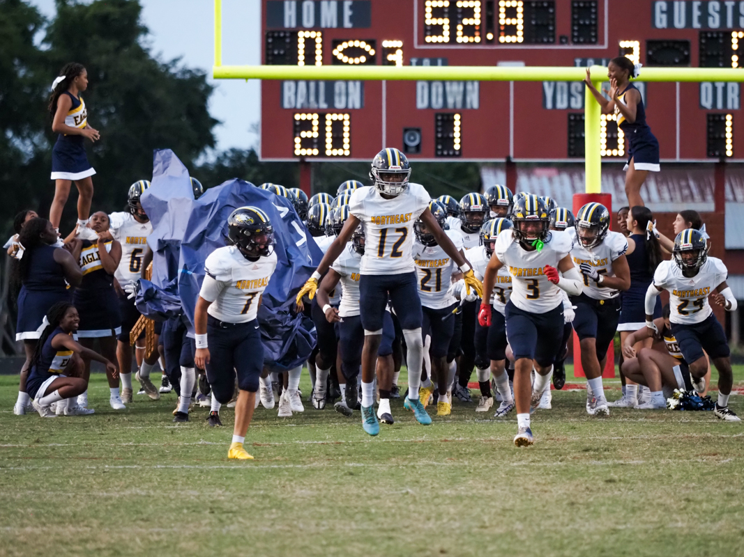 It seemed like the quarter would end with the hosts up 17-0, but running back Khameron Athy of Northeast had other plans. He broke through for a 65-yard touchdown in the closing seconds of the half. The Eagles attempted a 2-point conversion and failed, going into halftime down 17-6.