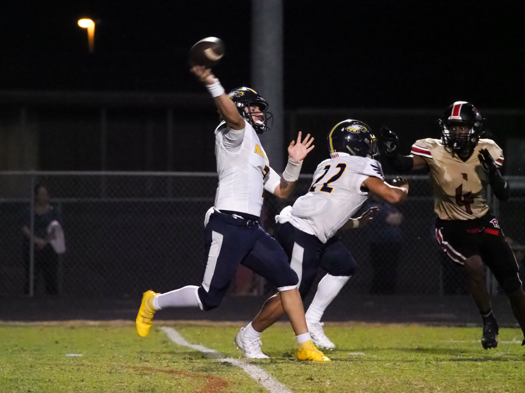 First year Eagles coach Claude Townsend had praise for his team’s resilience. “We weren’t going to give up. We knew we were in this game. They call us a second half team. A second half team, we’re going to keep on going. … We had some struggles here on penalties, you know, a lot of penalties against us. We just had to keep on fighting.” His team was called for five penalties throughout the game.