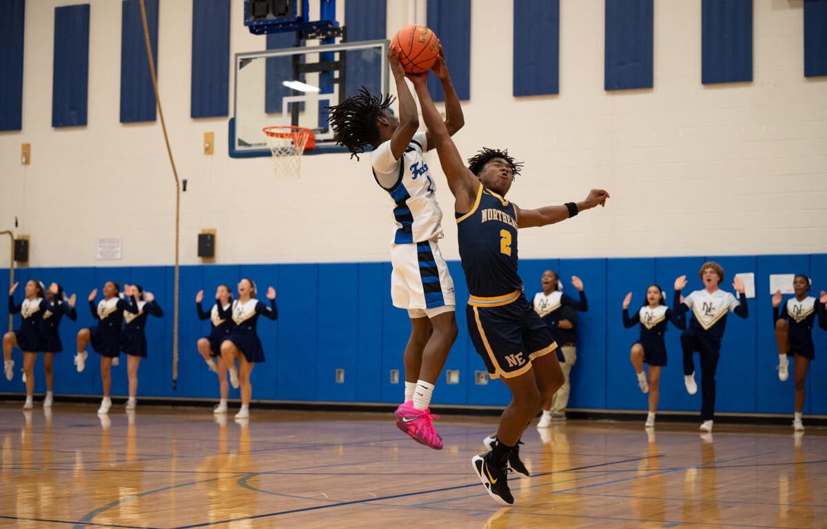 CLARKSVILLE, TN (CLARKSVILLE NOW) – The Northeast Eagles traveled to Fort Campbell High School for a matchup with the Falcons on Tuesday night. In the first quarter, the two teams went toe-to-toe, but due to an outstanding effort on the boards, the Eagles were able to pull away in the second quarter, and they never relinquished their lead, winning 74-49.