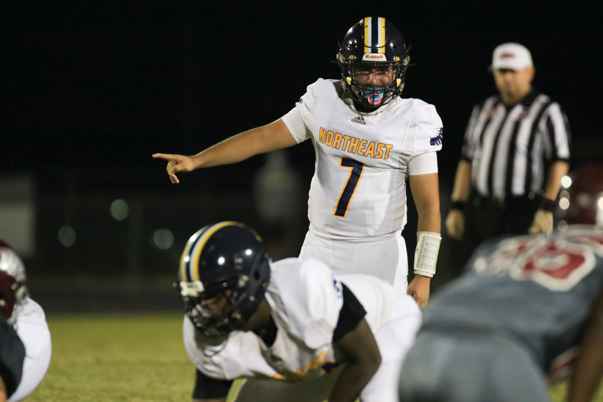 Eagles wide receiver Jaylen Bussey had two touchdown grabs, including one on fourth down that put Northeast up 14-0 in the opening quarter.
