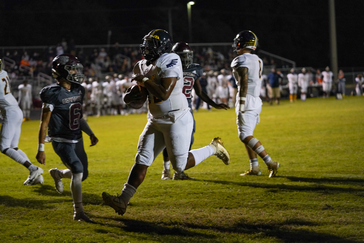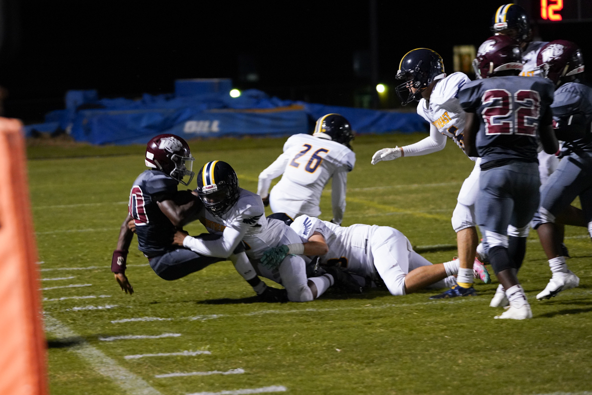West Creek quarterback Ti-Anthony Wagner was swarmed in the backfield on numerous snaps. The Coyote offensive line struggled mightily in pass protection while the Eagles took advantage.