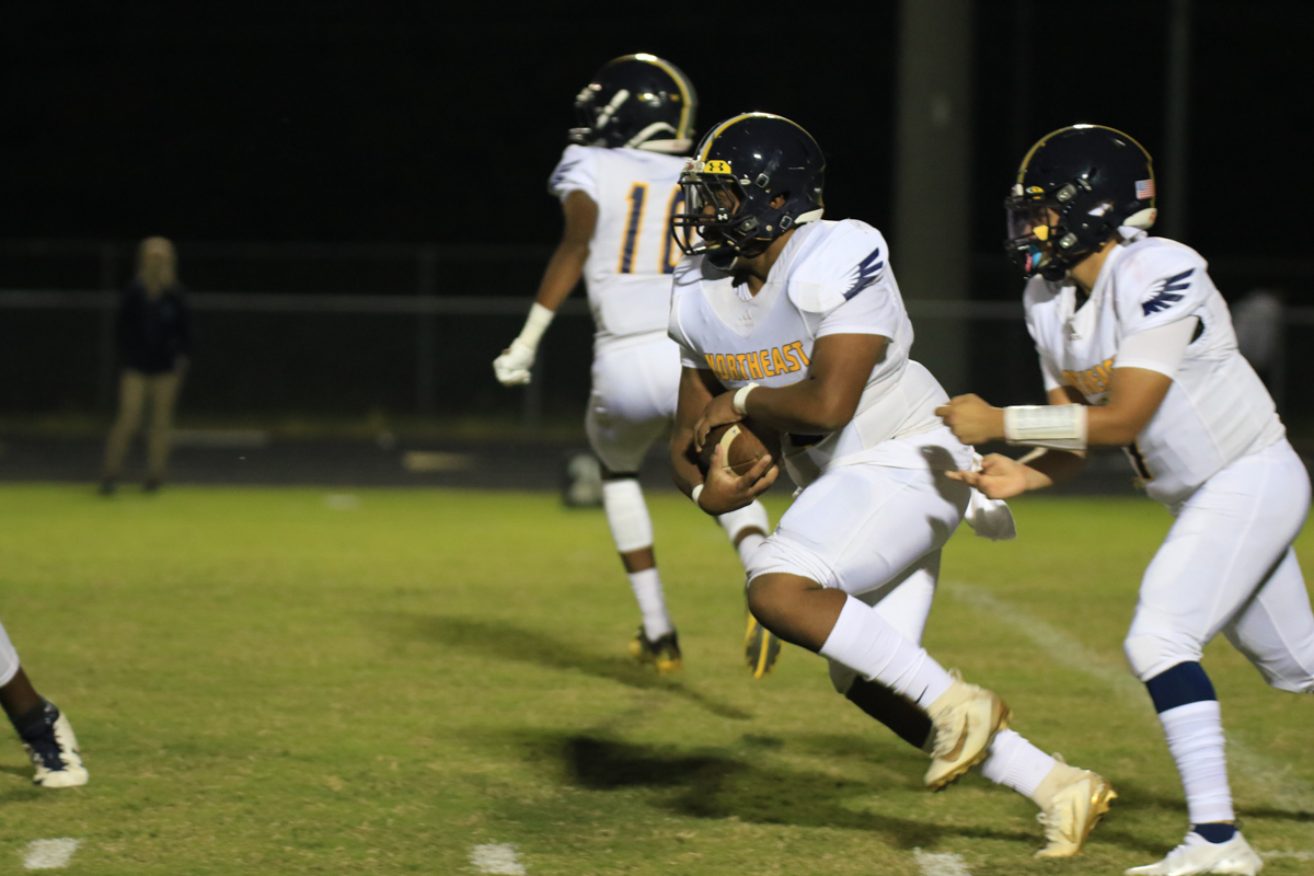 After Northeast came away with the ball on a squib kick, Harris carried multiple West Creek defenders into the end zone to make it 28-0.