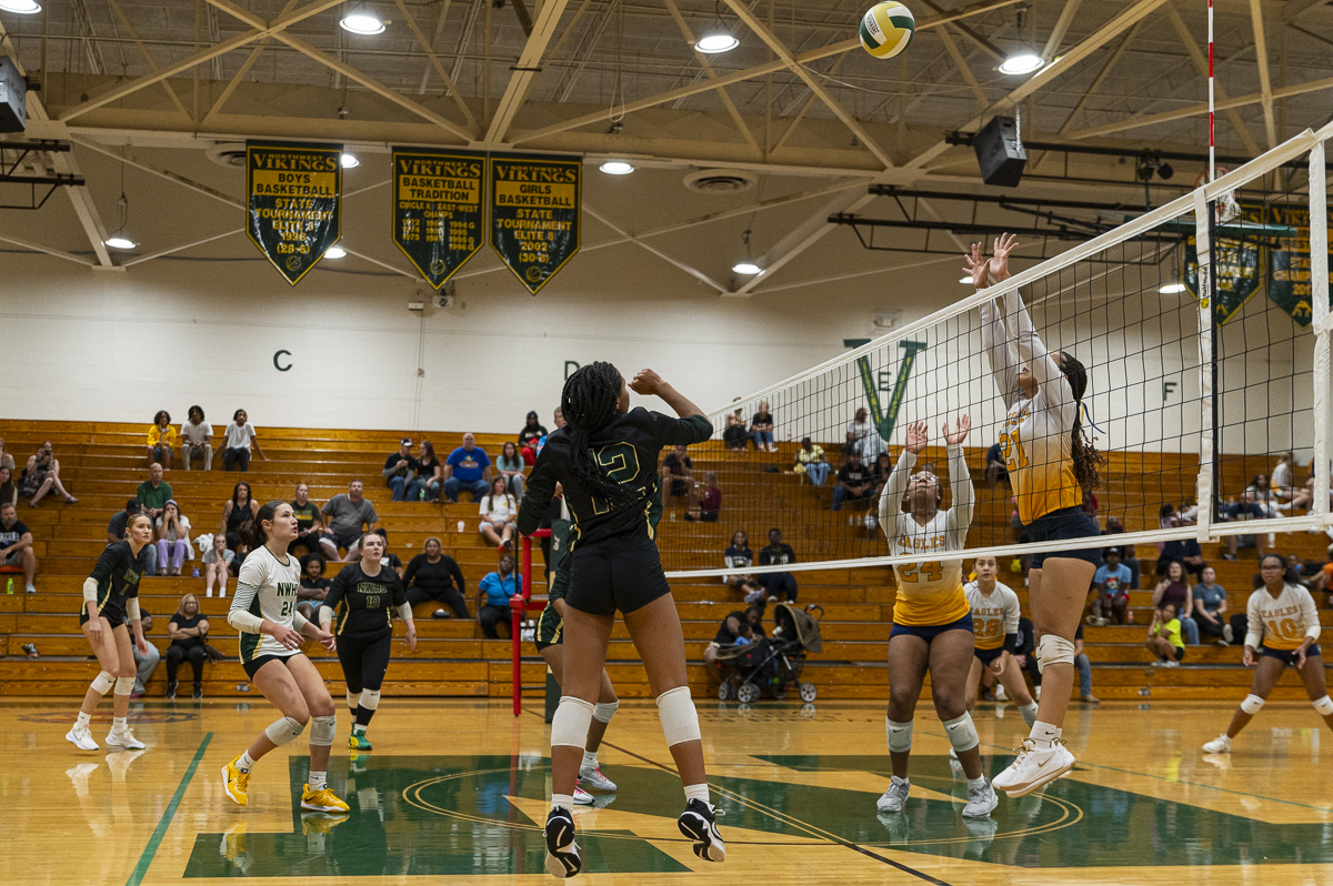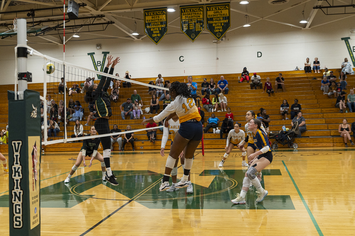 The Northeast Eagles payed a visit to Northwest High school for a season opening volleyball match with the Vikings. A high energy, back and forth match, with all sets being decided within five points, came down to the fifth and final set, which Northwest took to secure the match, 3-2.