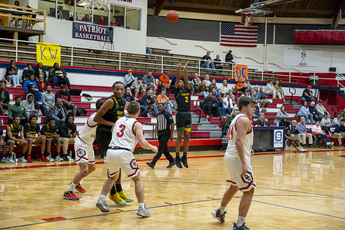 #24 AJ Wallace sinks the final shot that sealed the win for the Northwest Vikings against Dickson County on Februaruy 25, 2025 (Jeff Danault)