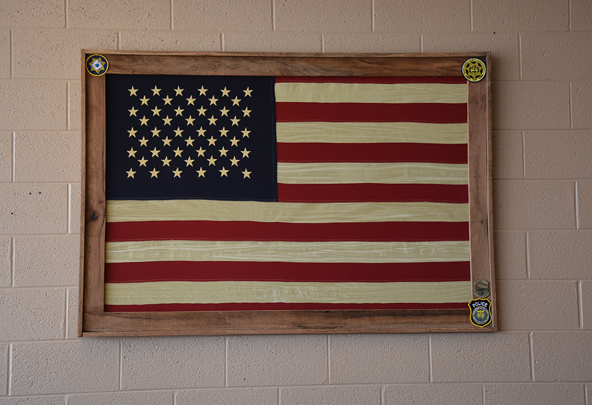 Eric and Wendy said that veterans, active duty military, firefighters and police officers are welcomed to bring in one of their patches and add it to the flag displayed on the wall as a tribute to the people who serve in the Clarksville community.