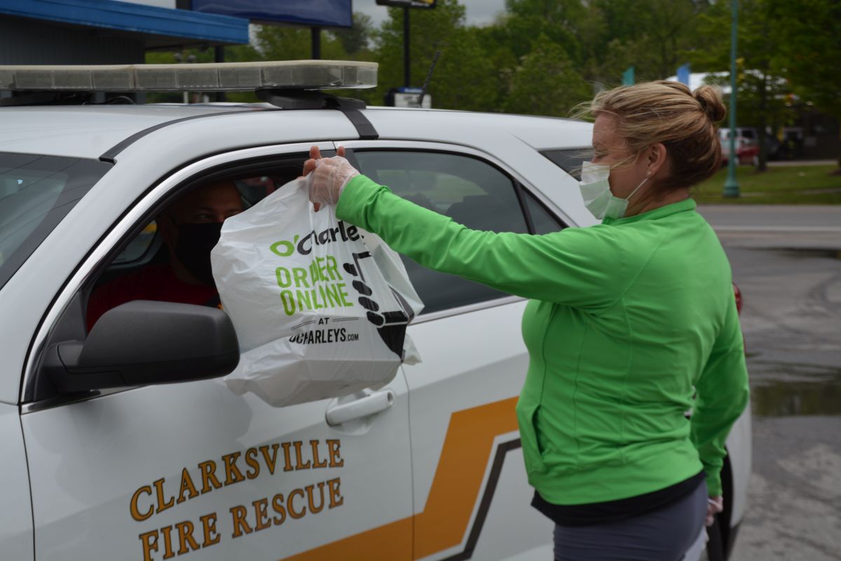 Members of the Clarksville Police Department, Montgomery County Sheriff’s Office, Clarksville Fire Rescue, and others received a cheeseburger, chips and a drink as part of the O’Charley’s ‘Hometown Heroes’ initiative.