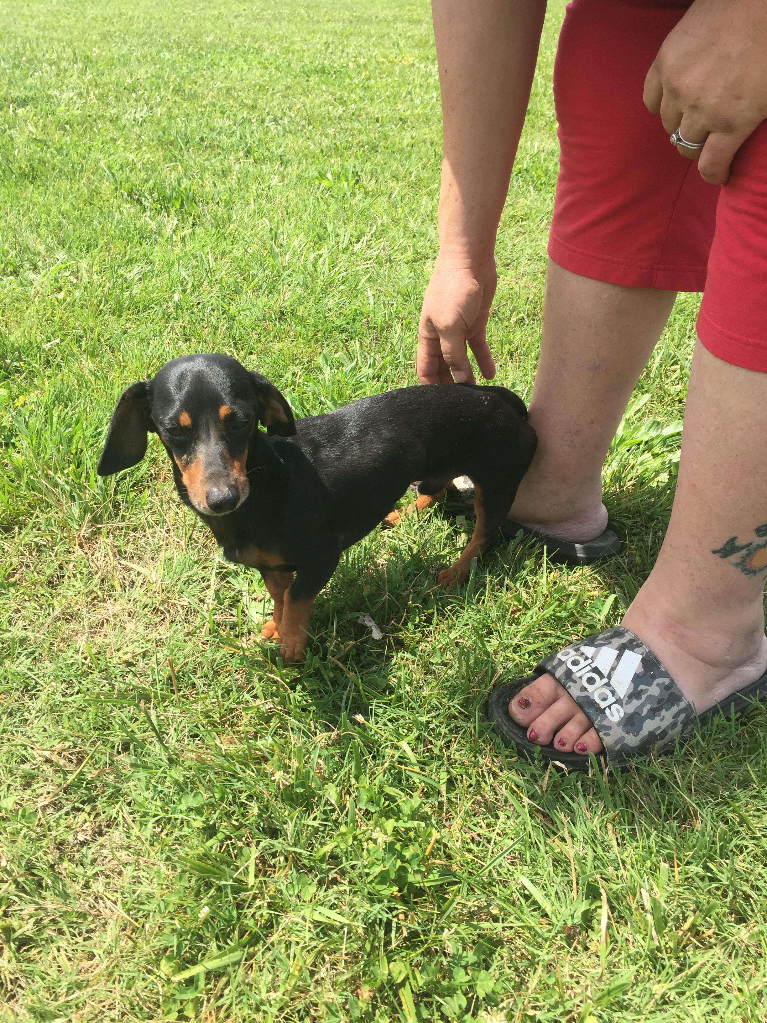 After several minutes of looking, the troopers found a dachshund, later identified as “Rocco”, trapped inside the trunk of a tree.