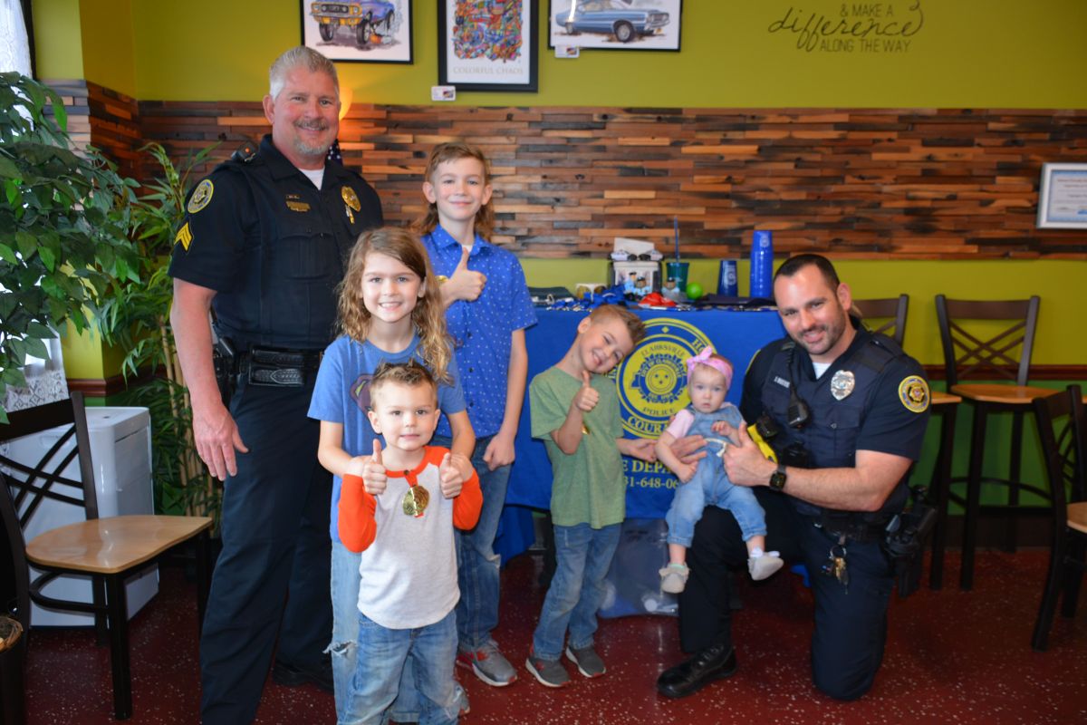 The officers enjoyed lunch, shared conversation, and passed out police promotional items to those who stopped by on Dunlop Lane. Clarksville Police Department Sgt. Johnny Ransdell talked about their visit to Caprigio’s.