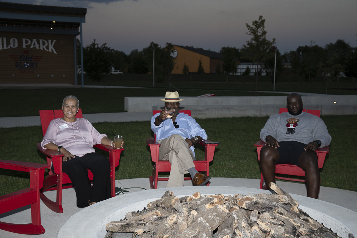 Tanuriele Stapleton, Tony Melbourne, and Diane Spencer at the Chamber Business After Hours at Old Glory Distillery. September 19, 2024. (Jeff Danault)