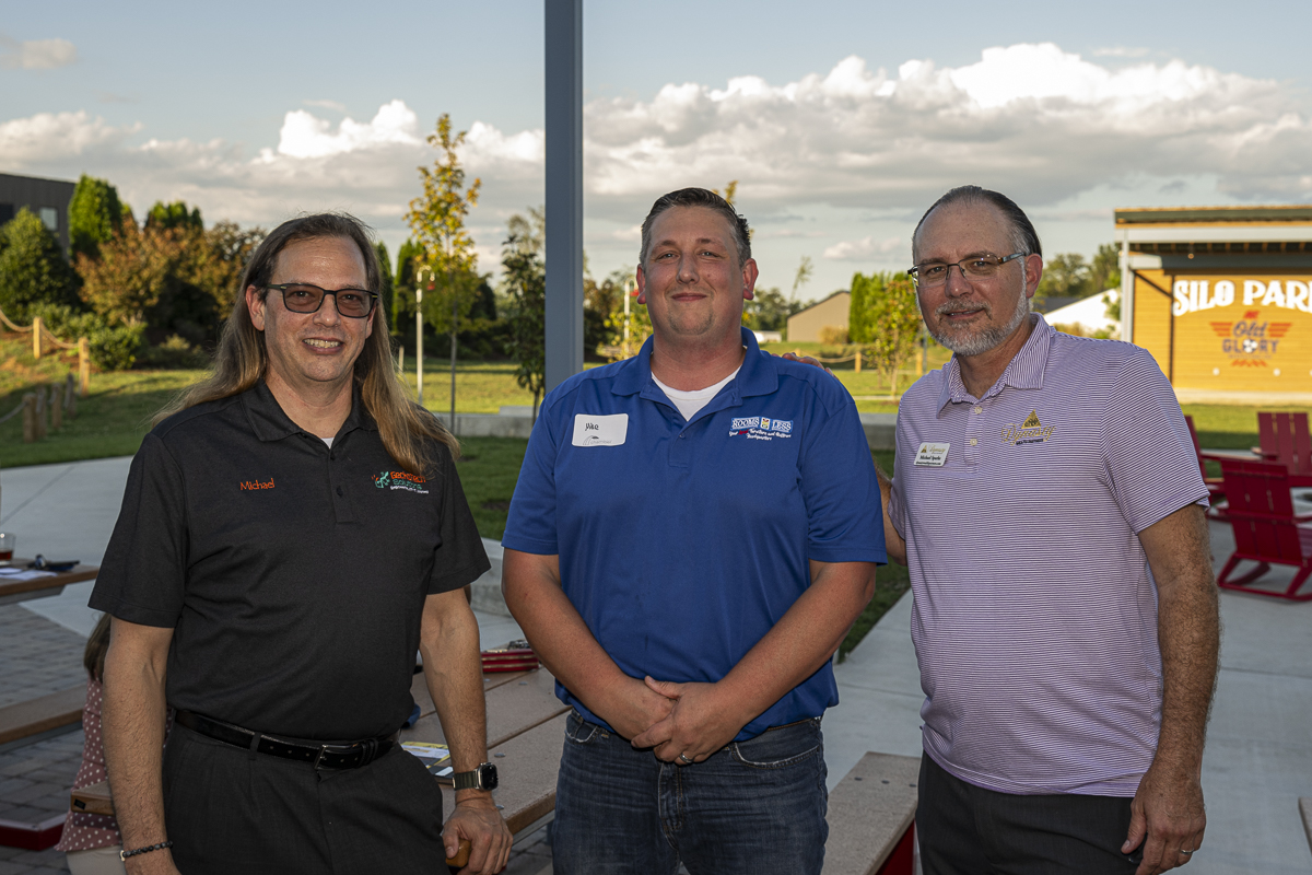 Michael Craig, Mike Mcallister, and Michael Sparks att he Chamber Business After Hours at Old Glory Distillery. September 19, 2024. (Jeff Danault)