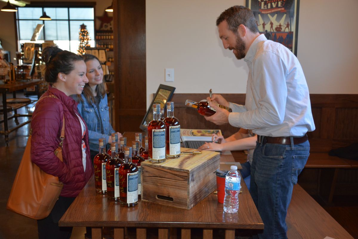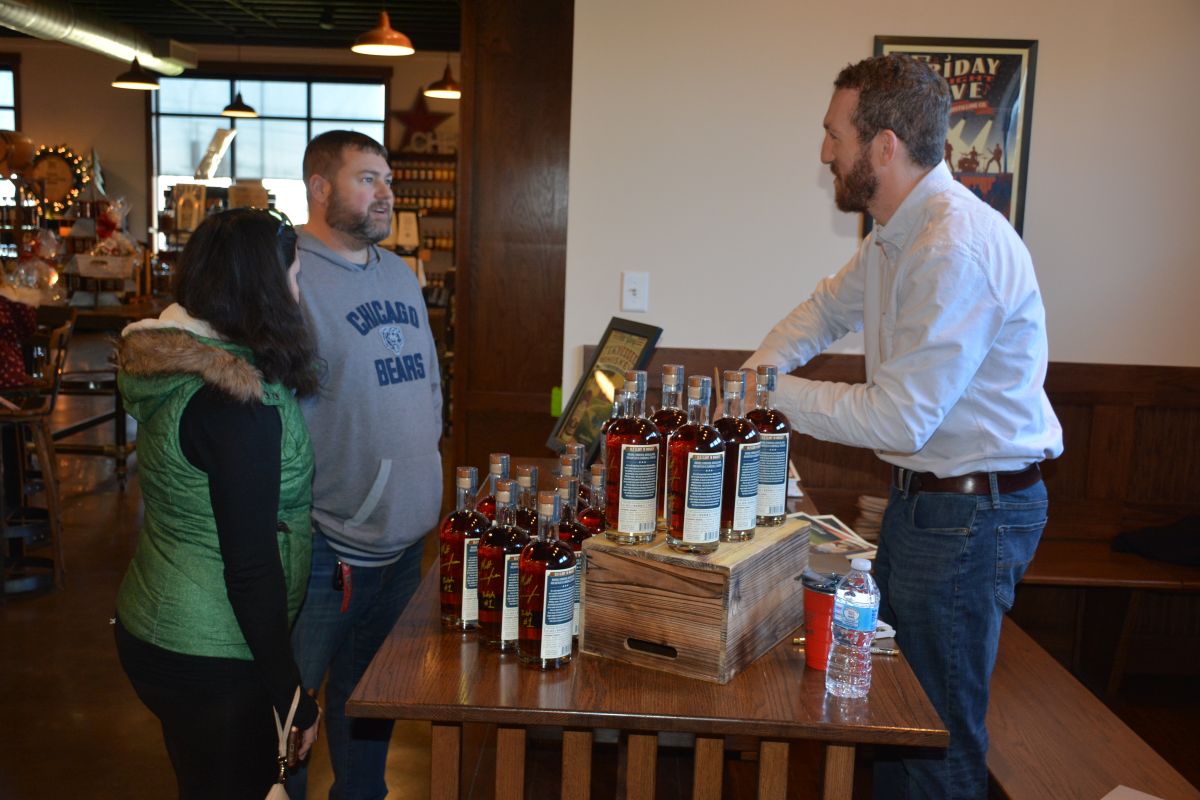 Matt Cunningham, Founder of Old Glory Distilling Co., greets a customer at his Inaugural Release of the distillery’s Tennessee Whiskey and Bourbon on Sat. Nov. 27,2021. (Lee Erwin).