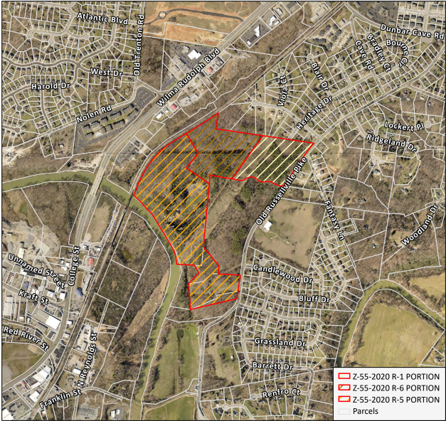 The property containing the inactive quarry, between College Street/Wilma Rudolph Boulevard and Old Russellville Pike, is primarily zoned M-2 for heavy industrial use.