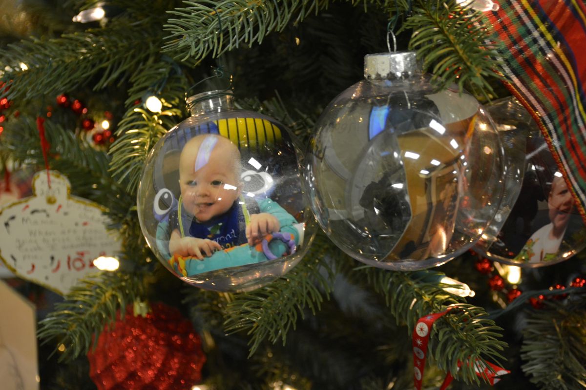 Handmade ornaments placed on a Christmas tree by family and friends of homicide victims to honor their memory for the On Wings of Love ceremony at First Baptist Church, on Dec. 6, 2022. (Lee Erwin)