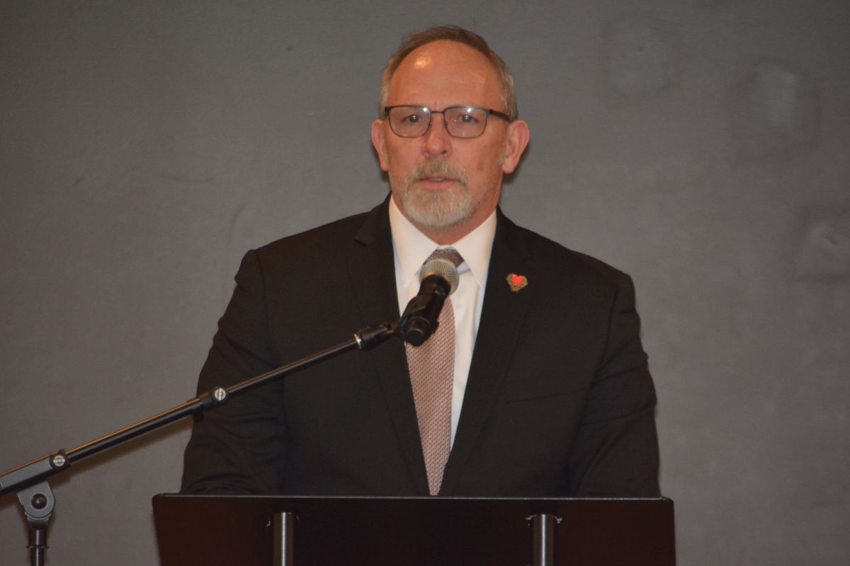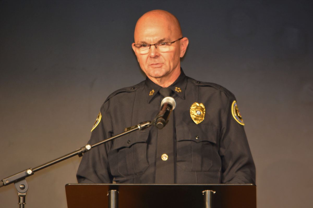 Clarksville Police Chief David Crockarell speaking at the On Wings of Love ceremony at First Baptist Church to honor the memory of homicide victims, on Dec. 6, 2022. (Lee Erwin)