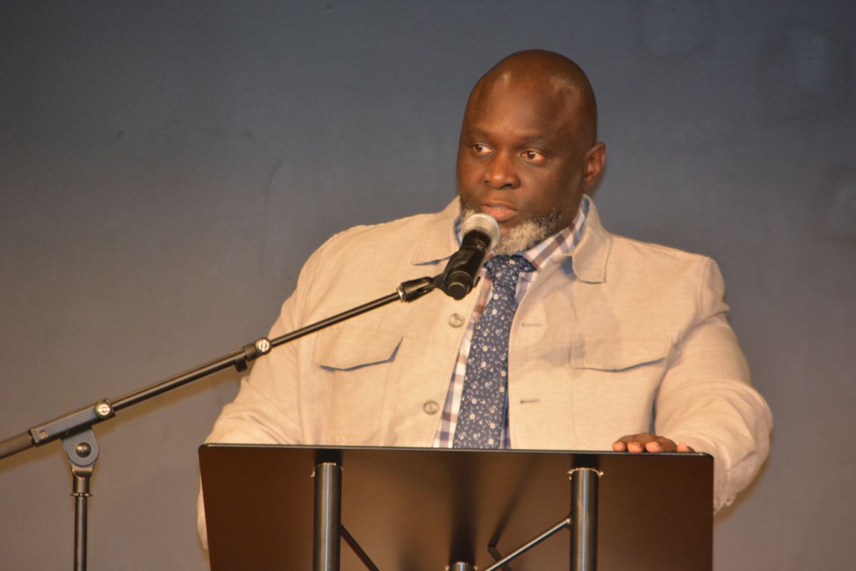 Demone Chestnut speaking at the On Wings of Love ceremony at First Baptist Church to honor the memory of homicide victims, on Dec. 6, 2022. (Lee Erwin)