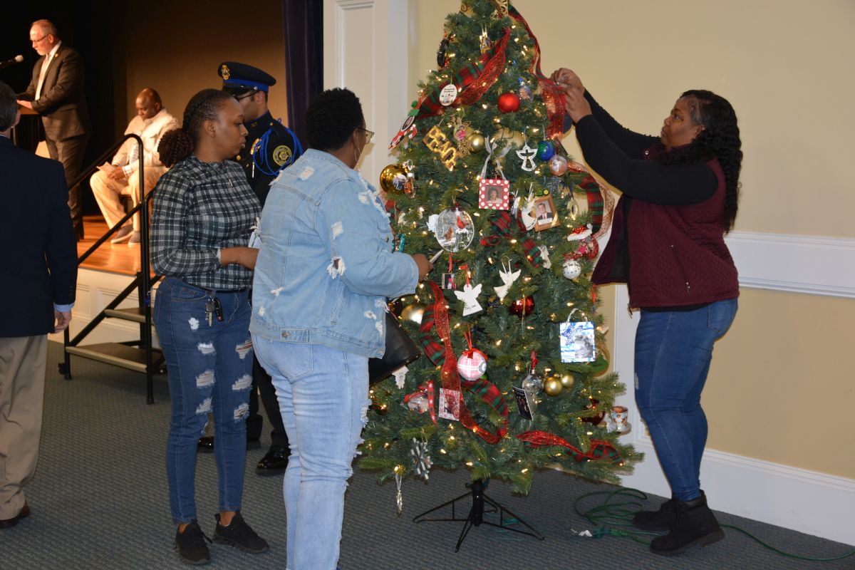 The ceremony is held to remember and honor those who have lost their lives to violence or homicide. Victim’s families and friends placed a handmade ornament on one of the two Christmas trees inside the fellowship hall.