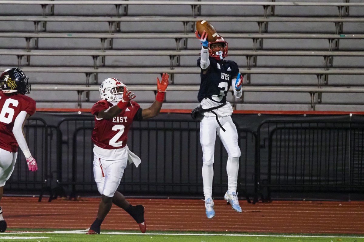 The East football team defeated the West squad during the All-Star Classic on Dec. 9, 2022. (Ryan Vinson)