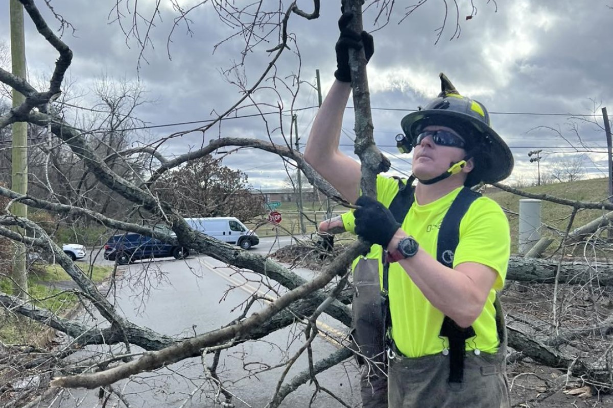 Powerlines and trees were damaged in Clarksville during a powerful windstorm, March 3, 2023. (Michael Rios Clarksville Fire & Rescue contributed)