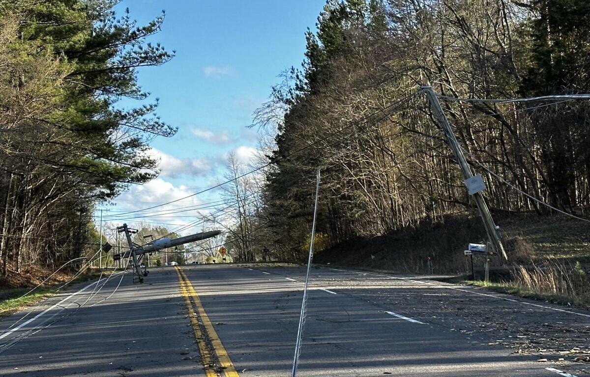 Powerlines and trees damaged in Clarksville, on March 4, 2023, the day after a powerful windstorm. (CDE, contributed)