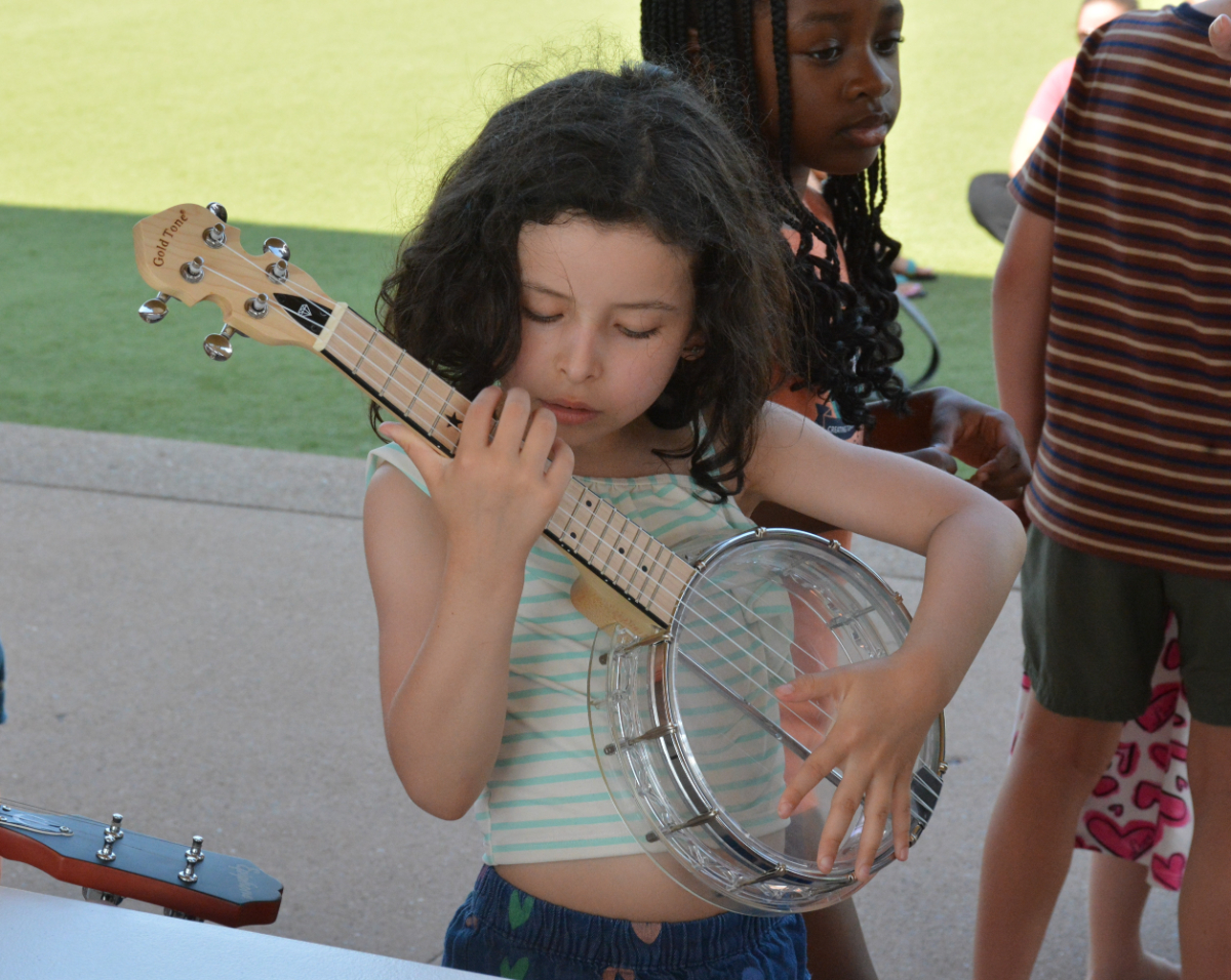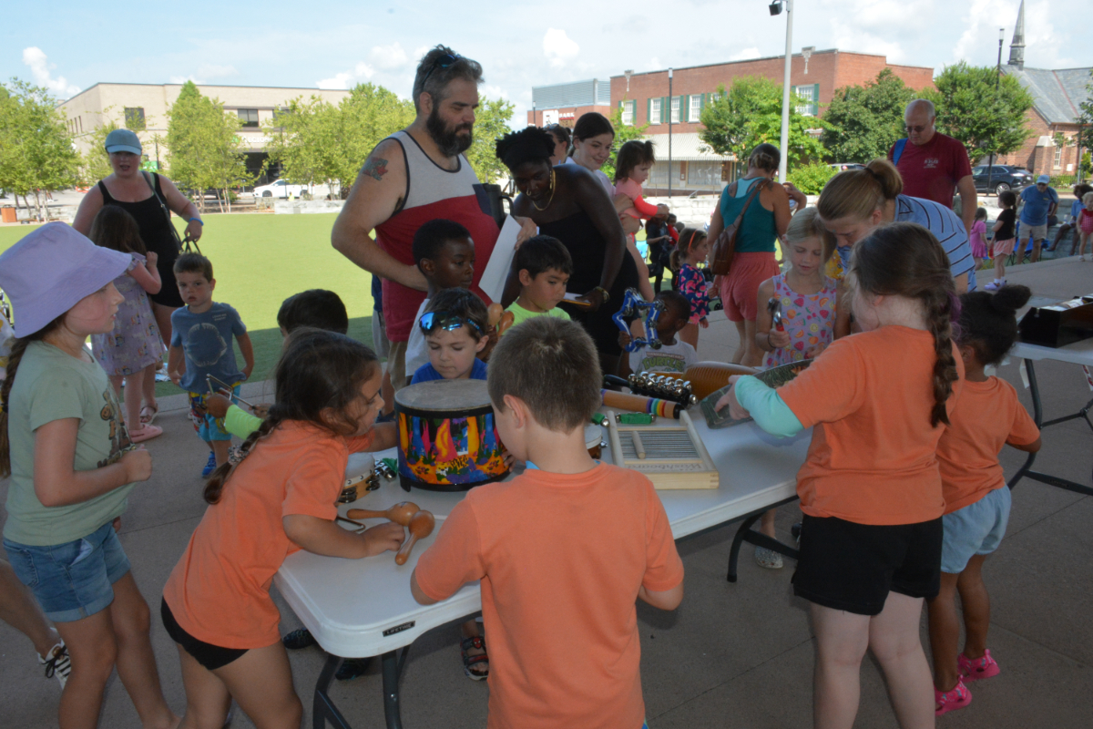The Country Music Hall of Fame Instrument Petting Zoo at the Downtown Commons. The event was part of the Clarksville-Montgomery County Public Library’s Color Our World Summer Reading Program on Junne 18, 2025. (Lee Erwin)