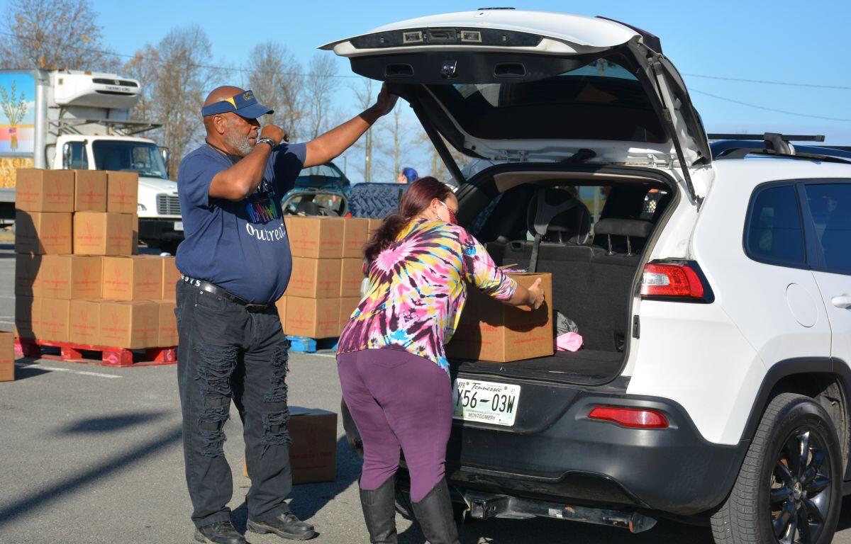The area from Valor Hall/Oak Grove Memorial Trail all the way to Fort Campbell Boulevard and down to well past Gate 7 Road was lined with vehicles as close to 40 volunteers loaded cars and trucks with food.