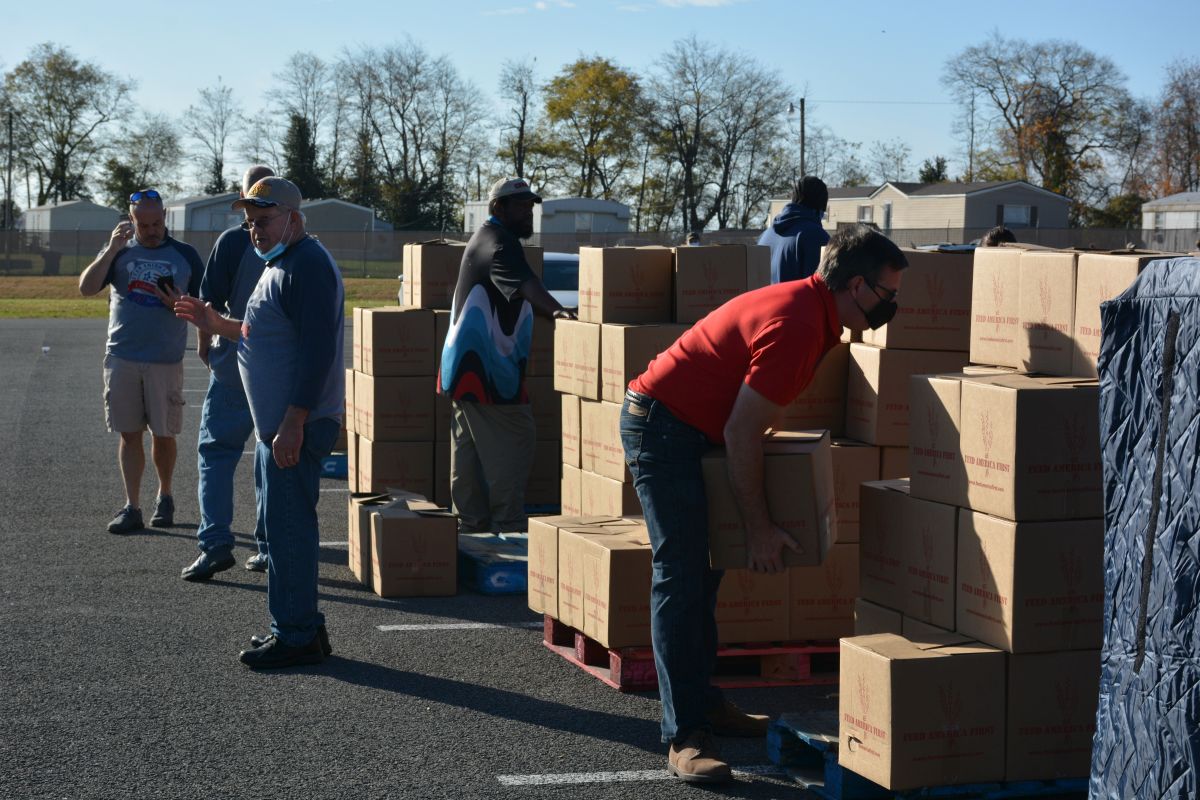 Organizers said it was a way to celebrate Veterans Day and to thank the military for their service. Oak Grove Mayor Theresa Jarvis was one of the volunteers helping to see the food was distributed.