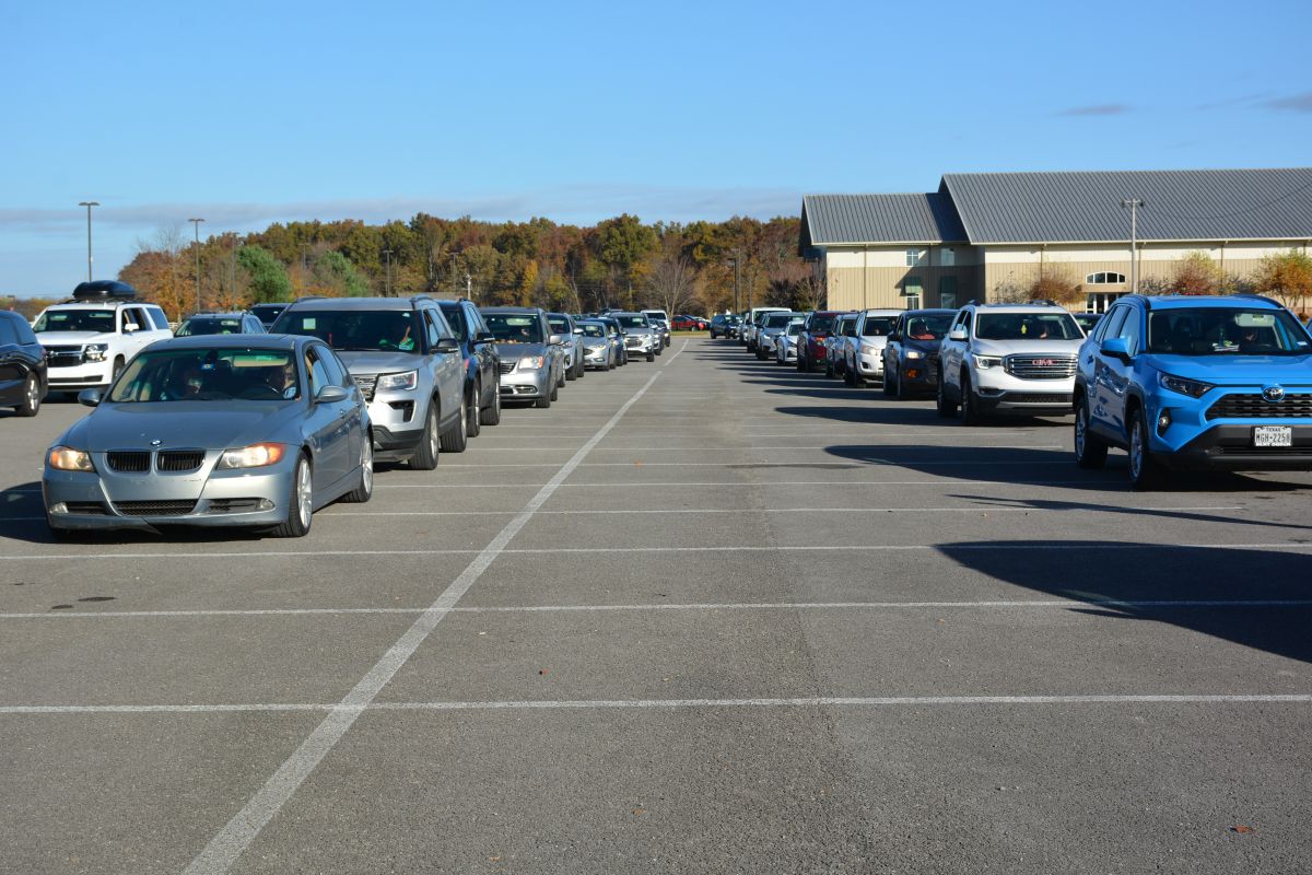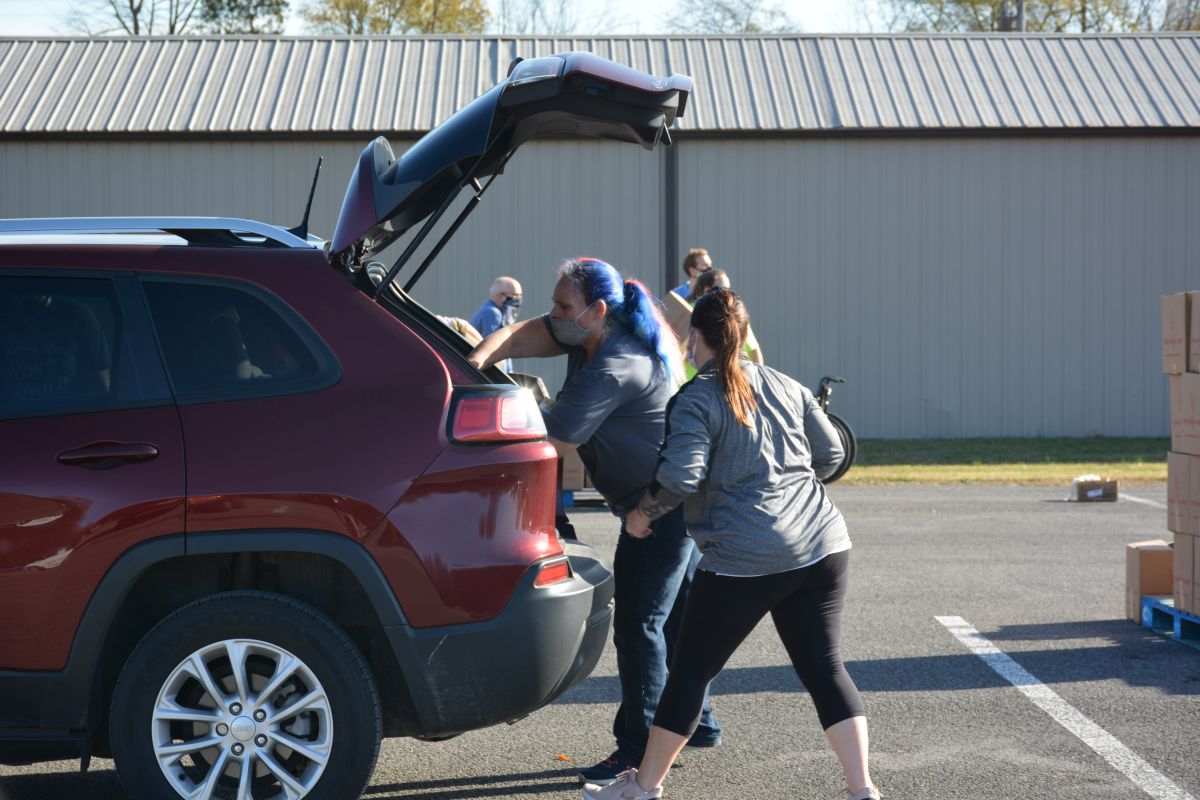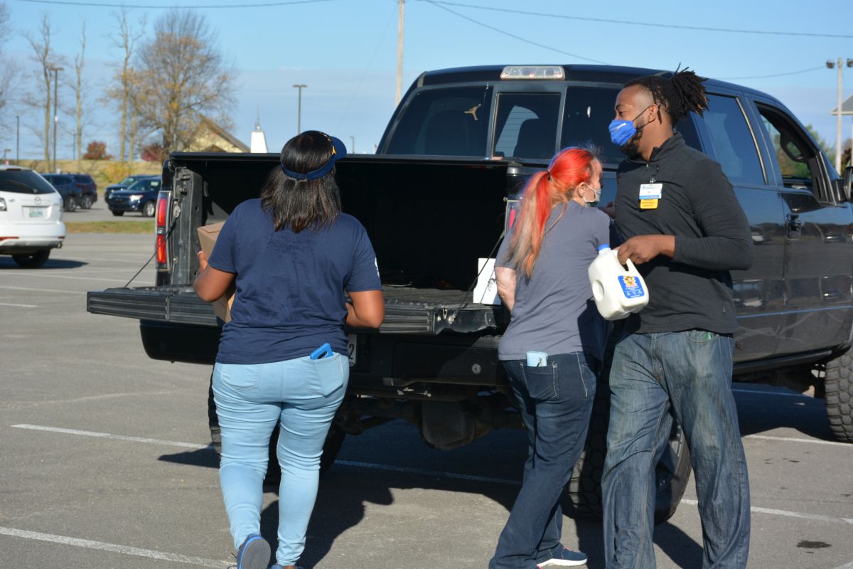The area from Valor Hall/Oak Grove Memorial Trail all the way to Fort Campbell Boulevard and down to well past Gate 7 Road was lined with vehicles as close to 40 volunteers loaded cars and trucks with food.
