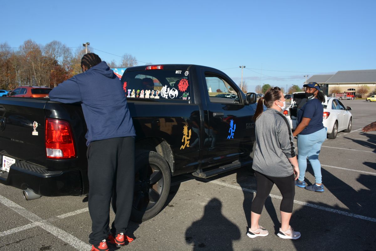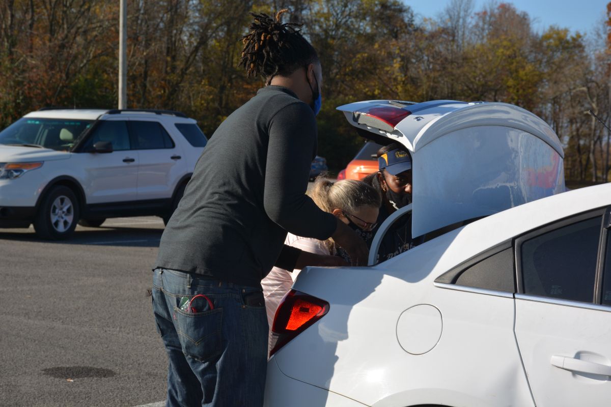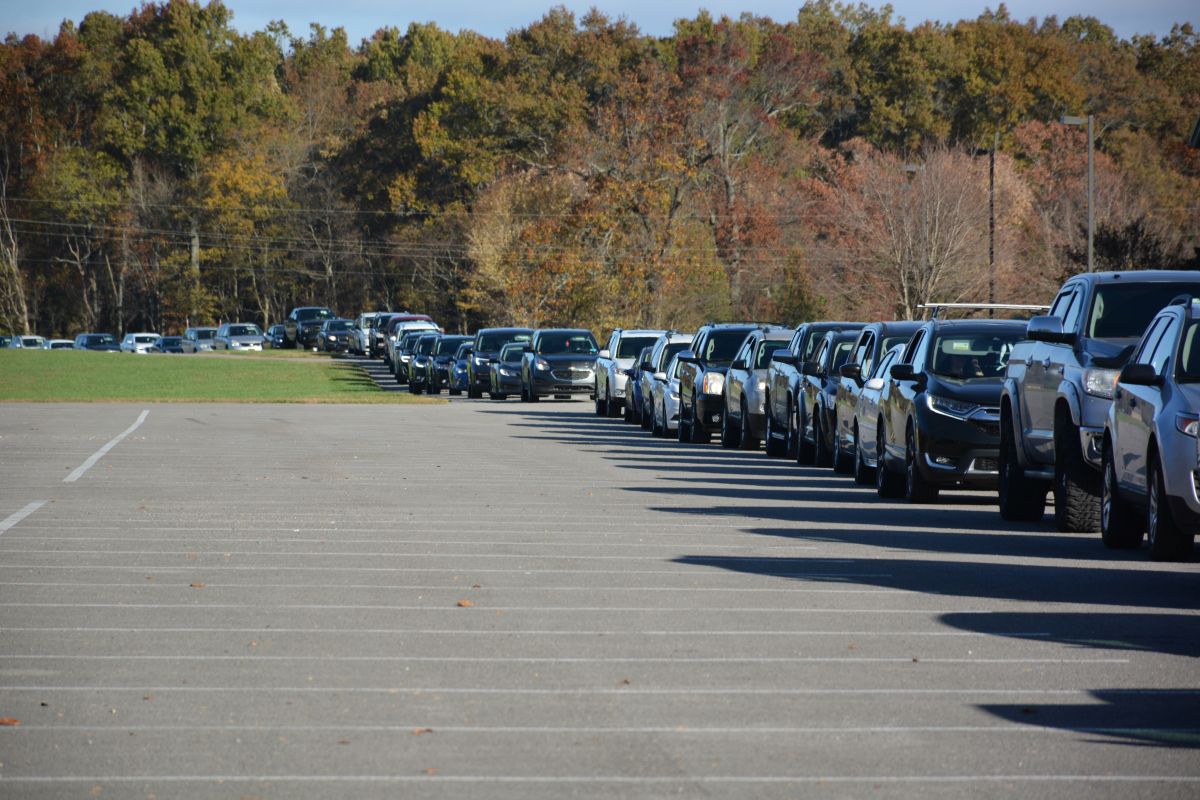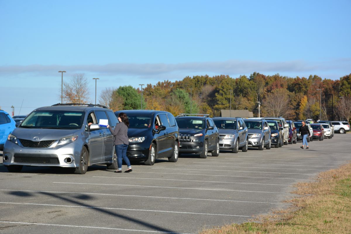 The area from Valor Hall/Oak Grove Memorial Trail all the way to Fort Campbell Boulevard and down to well past Gate 7 Road was lined with vehicles as close to 40 volunteers loaded cars and trucks with food.