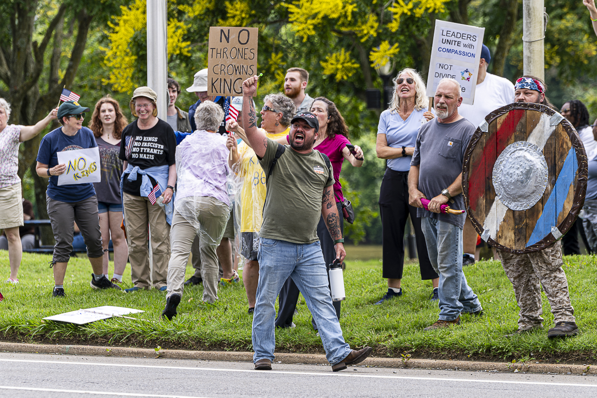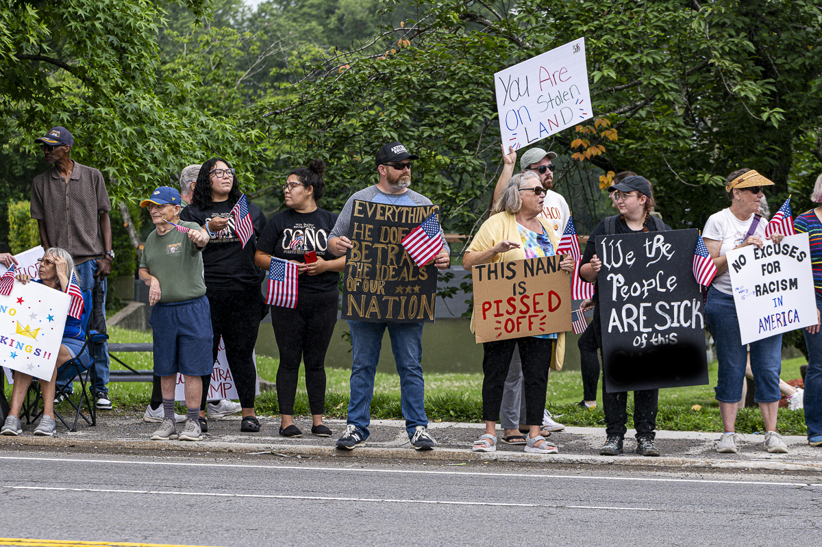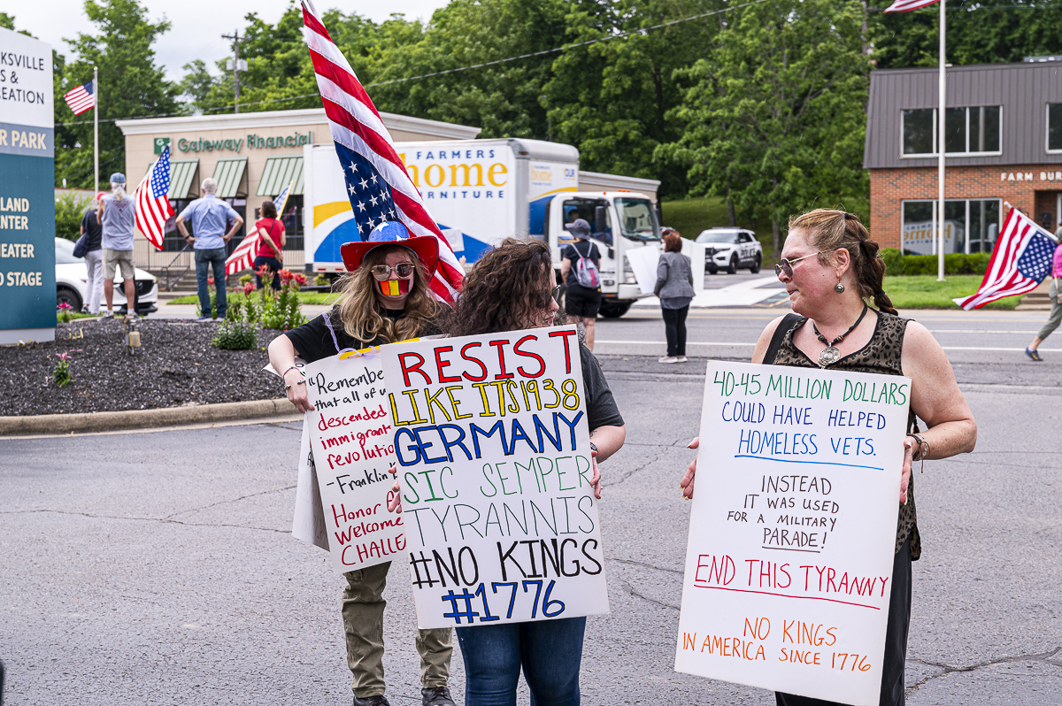 “No Kings is a counter movement to that, not to the Army, but to Trump’s authoritarian agenda,” said Joy Rice of Clarksville Indivisible, which organized the Clarksville protest. “So all of a sudden, we don’t have money for Medicaid. We’re gonna cut costs everywhere, but we’re gonna blow millions of dollars on a birthday party parade for the president. I find that extremely offensive, and it does reek of authoritarianism,” said Rice.