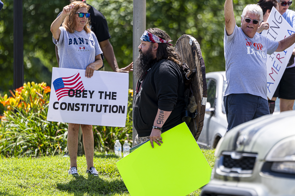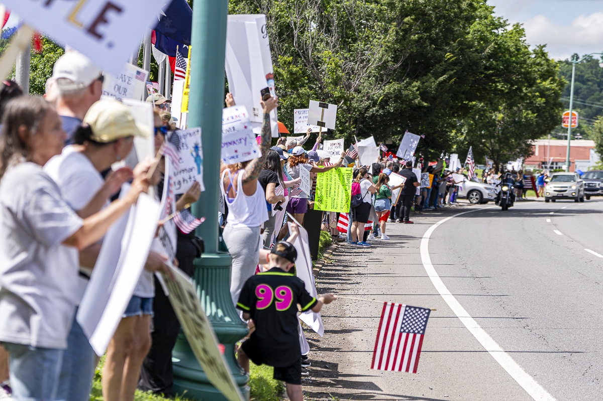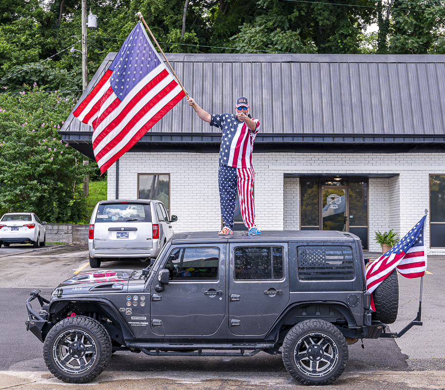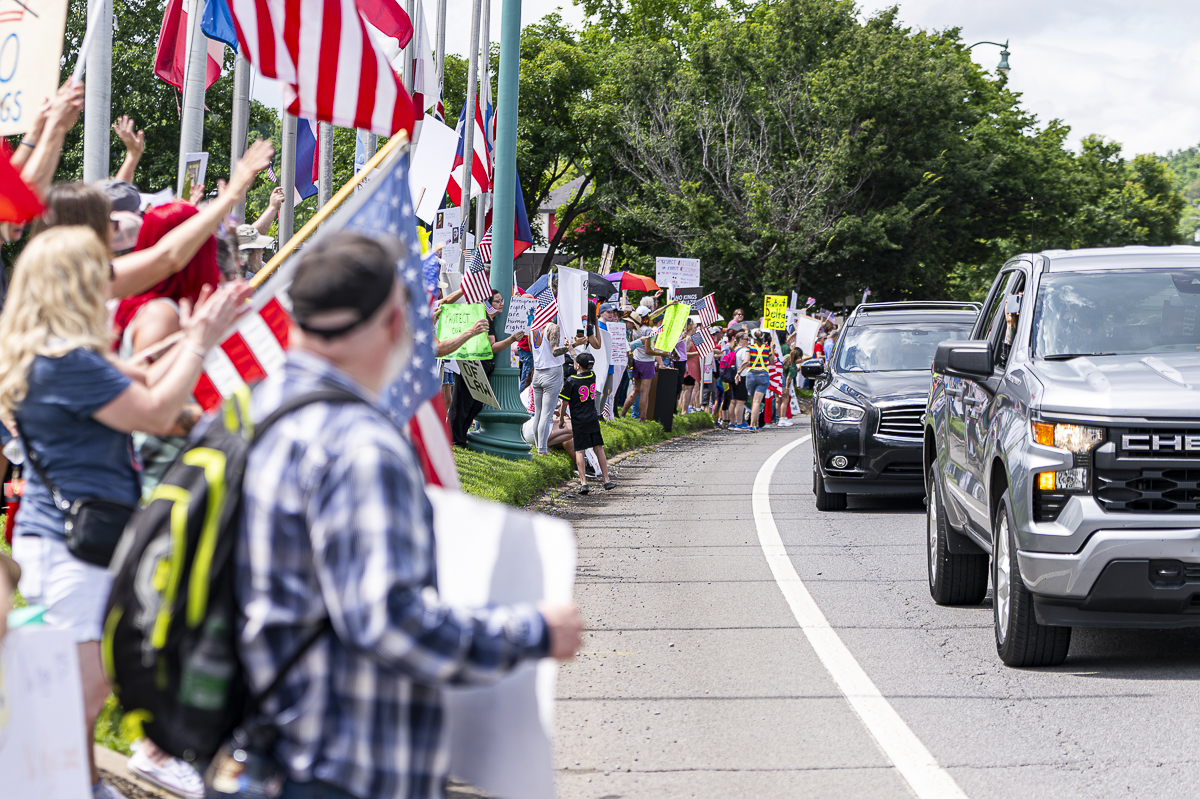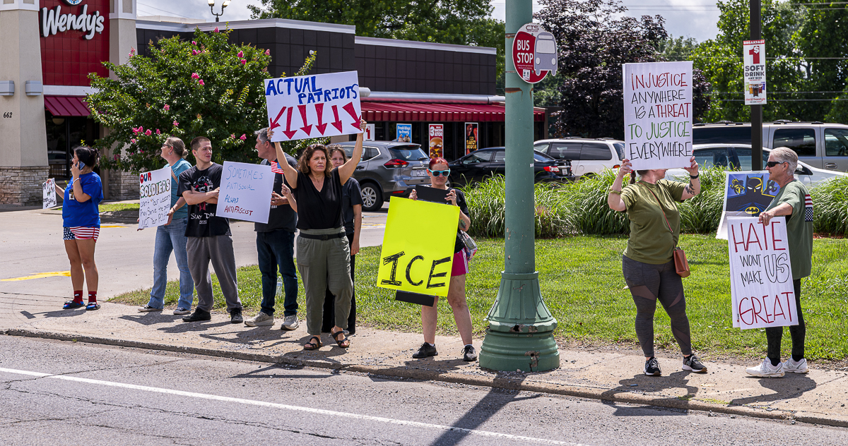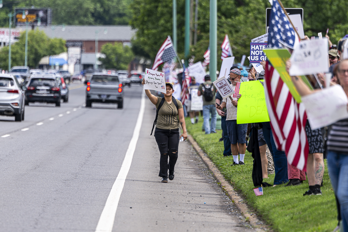 Clarksville Indivisible was created in 2017 by Karen Reynolds, retired Army master sergeant and Clarksville City Council member. Reynolds was the organizer from 2017 until 2020, when she ran for City Council. On Saturday, she walked the line, holding up signs and firing up the protesters.