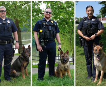 Three Clarksville Police Department officers, Lyssed Pacheco, George Goodman, and Steven Deering recently completed an extensive six-week police patrol and detection canine handler course in Nashville NC with their K9 partners.