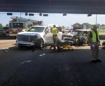 Multiple vehicles crashed this morning on Wilma Rudolph Boulevard, and the northbound lanes were closed.