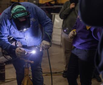 Inside the Mechatronics classroom at Clarksville High School, students saw TIG welding first-hand through the Blue-Collar Tour hosted by Western Welding Academy.