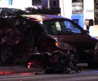 Two people were injured in a minivan and motorcycle wreck Monday night on Providence Boulevard.