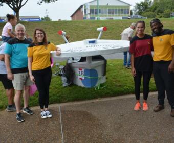 The twin towers of the Pillars of Hope remembering 9/11 are covered with 360 tiles painted by more than 300 citizens of Clarksville.