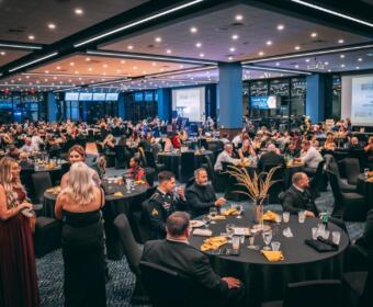 Members of Clarksville Young Professionals toured the new Shelby’s Trio across from the F&M Bank Arena.