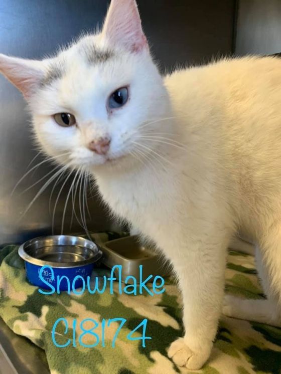 Snowflake is a beautiful small female domestic short hair with mesmerizing eyes. She is litter box trained and her vaccinations are up to date. Snowflake would make an excellent companion.