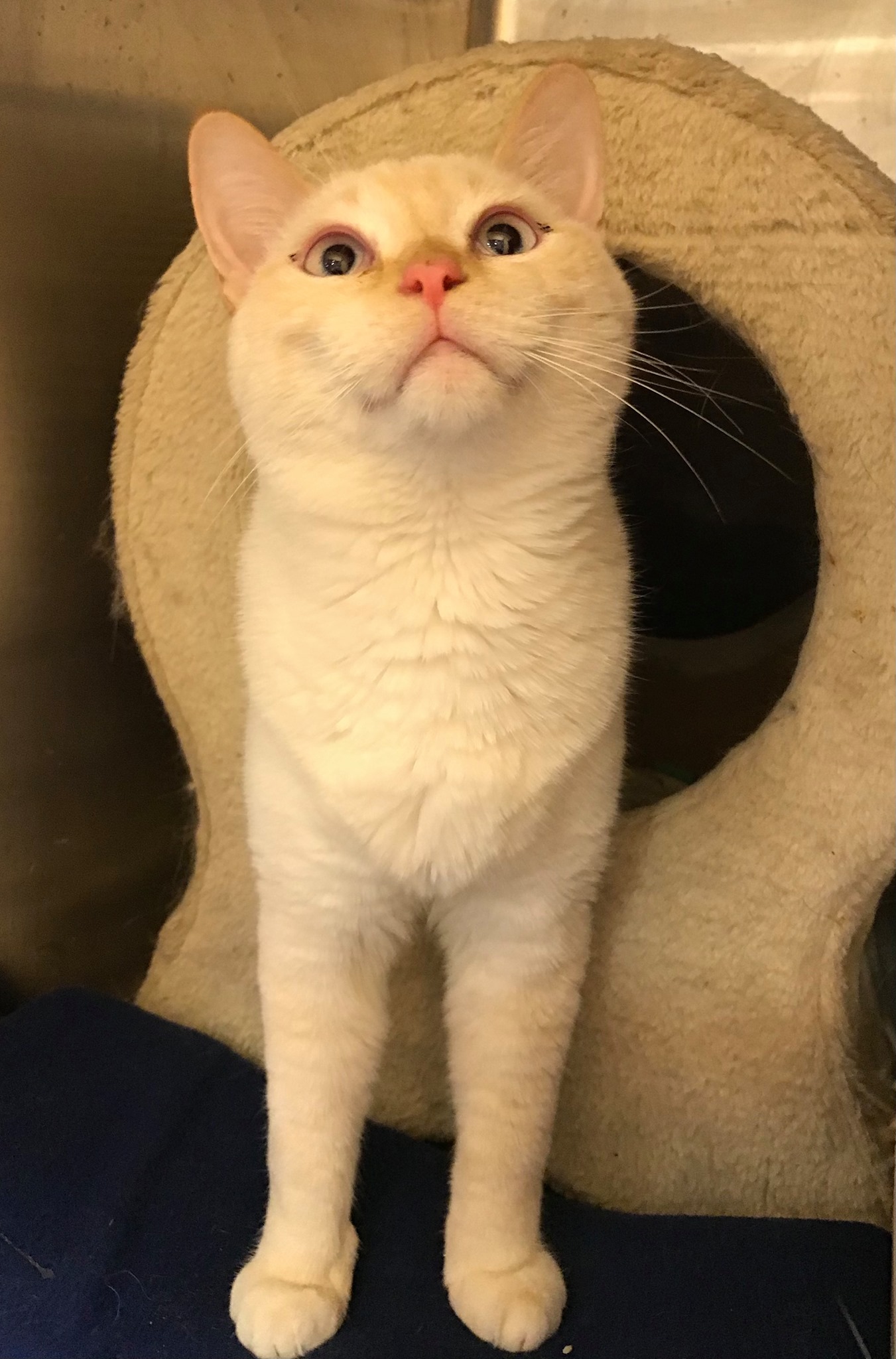 Knox is an 8-month-old male flame point Siamese mix with apricot points. He is extremely shy. He will need a patient owner and a quiet calm household. Noise and high activity would not be good for him. He may not be comfortable with other pets. Knox is neutered, vetted, and litter trained.